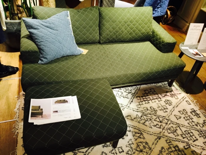 従来からある形状のソファですが、今回は新しくキルティングのカバーリングが仲間入りしたのだとか。