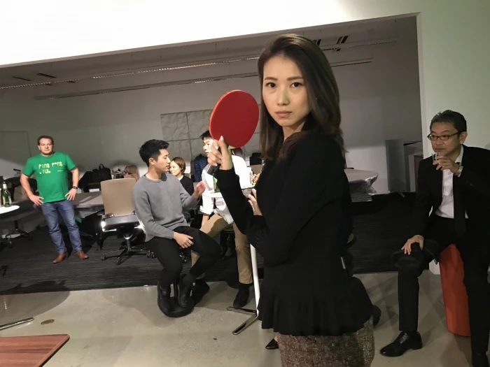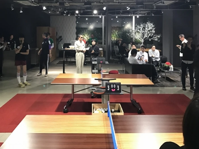まさか、家具のショールームで卓球をすることになるとは。。。