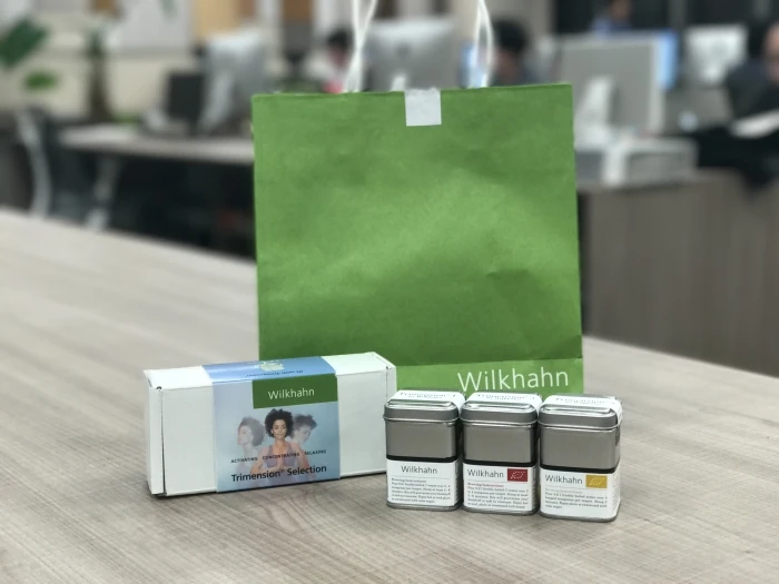 しかもなんと、Wilkhahn様のロゴ入り!!これは、冒頭でご説明をした“Trimension”を意識しており、体によく健康を推進しモチベーションを向上させるという意味から、オーガニックハーブティーが選ばれています。