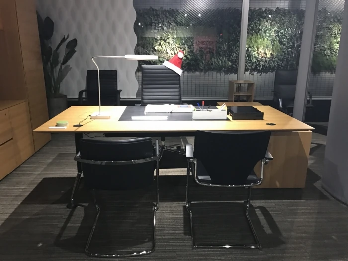 そしてこちらのエグゼクティブのデスクやチェア、シェルフのセット。