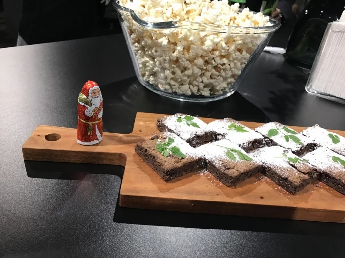 “Wilkhahn”の故郷にちなんで、ドイツ産のビールやワインが用意されており、クリスマスマーケットでもおなじみシュトーレンや、チョコレートブラウニーなどおいしいおやつもたくさん用意されていました。