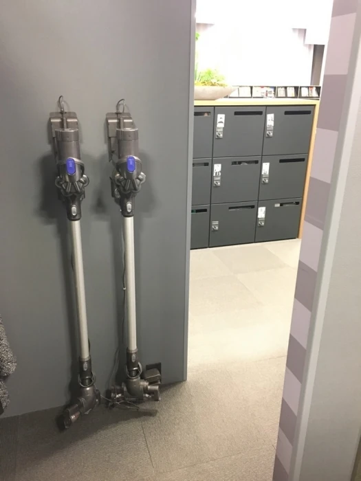 掃除機はワークスペースからすぐの壁に充電器が設置してあり、