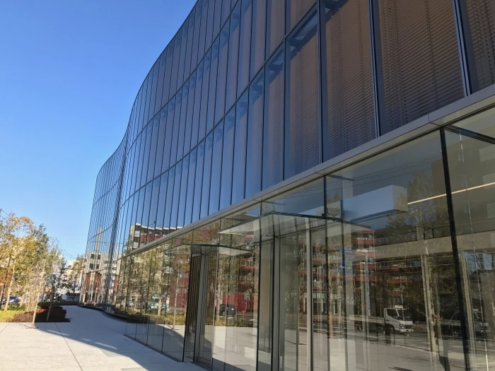 一面ガラス貼り波打っている外観がとても素敵です!!