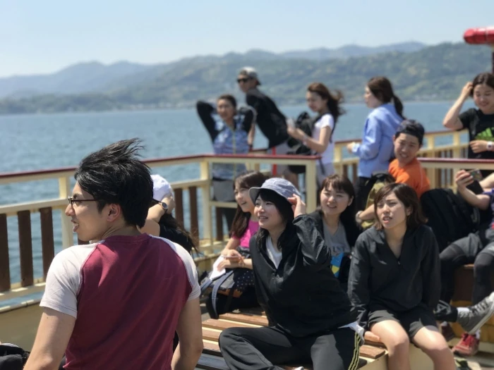 歩いている間は前へ進むことに夢中でしたが、遊覧船に乗っている間は心地よい風に吹かれながら、同期との穏やかな時間を過ごします。自然と心も綻び、笑顔も増え、気づけば同期同士でメンバーの良い所を叫びあっていたり。午前中の時間を一緒に歩いていただけでも、同期のことを一人の人として深く知るだけでなく、尊重・尊敬できる存在としてまで関係が変わっていました。