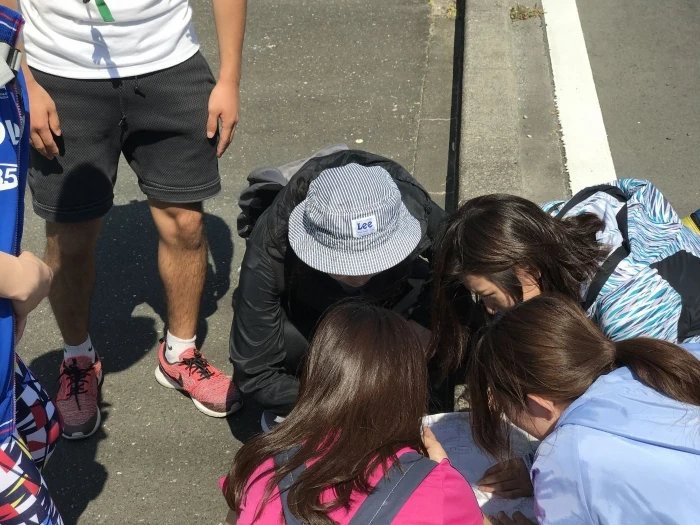 ナビゲーターの声を受けて、チームメンバー全員で地図を覗き込みます。