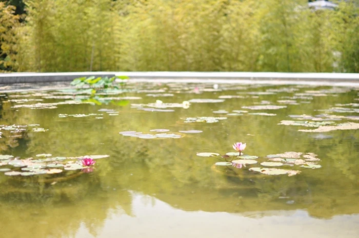 まだ進んでいくと、大きな蓮池が見えてきます。