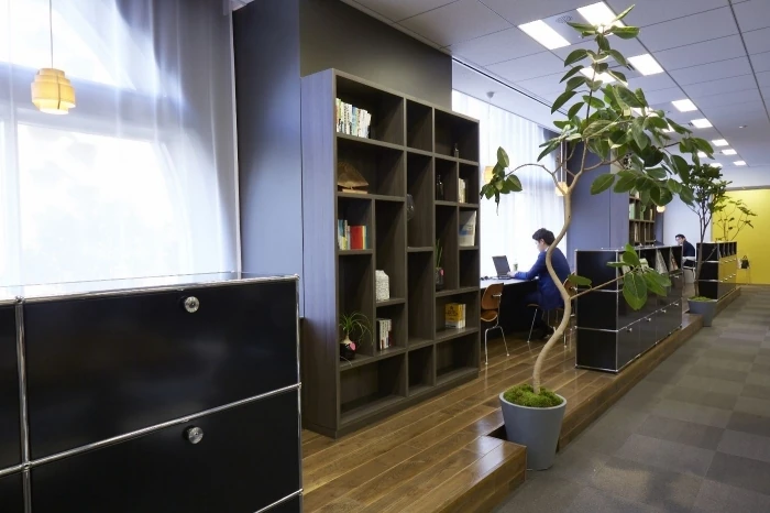 ノンテリトリアル・オフィスとは、領土を持たないオフィス空間を意味し、機能でいうところのフリーアドレスです。偶発的な出会いや接触を生み出すことに効果的なノンテリトリアル・オフィス環境。