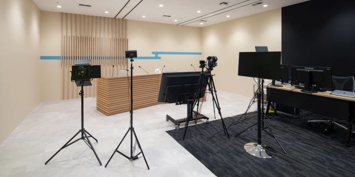 内装は、「多くの人に情報発信ができるオフィスにしたい」という思いをもとに、ニューススタジオを彷彿とさせる空間を作ったり、会議室や各エリアを関所となぞってコンセプトの決定や設計を行いました。