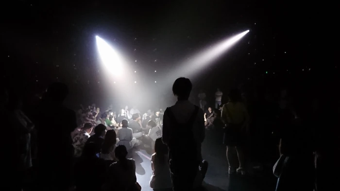 わたしたちはArt nightの時間に参加したので大人たちが暗闇のなか、何が始まるのかドキドキしながら待っていました。
