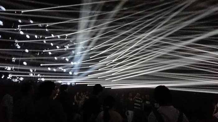 光は縦横無尽に動き回り、光の形が変わるたび、数秒前に自分が居た空間とは一変し、何度も何度も新しい異空間に迷い混んだような感覚に陥りました。