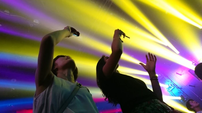 しばらくすると音ともに光の演出が始まり、急な音に同期のふみふみびっくり。