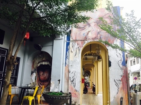 無料のバスで世界遺産の街、ジョージタウンに行けるそうで、繰り出しました。