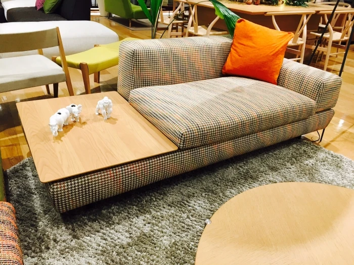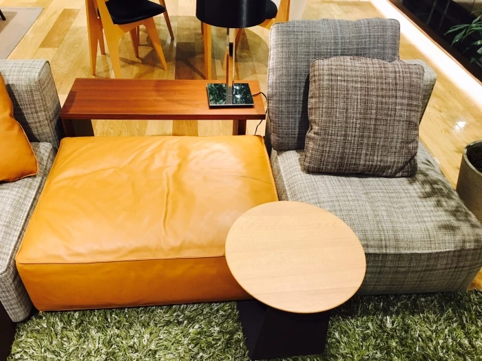 先日広報チームでお邪魔した「arflex」様でもマテリアルミックスのデザイン家具が