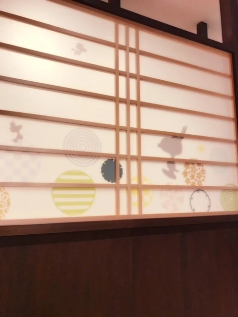 待合場所の前にある障子にはスヌーピーとウッドストックの影がちらほら