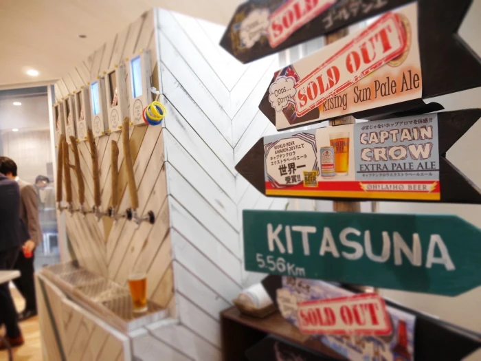 レバー一本一本に入っているビールの種類が違うそうで、種類案内が看板になっていました。この看板お洒落すぎる!!