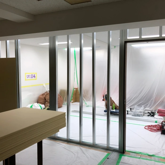 (2)スタッドとランナーの組み合わせシステムで、木に比べ施工性が良く、工事も早いです。