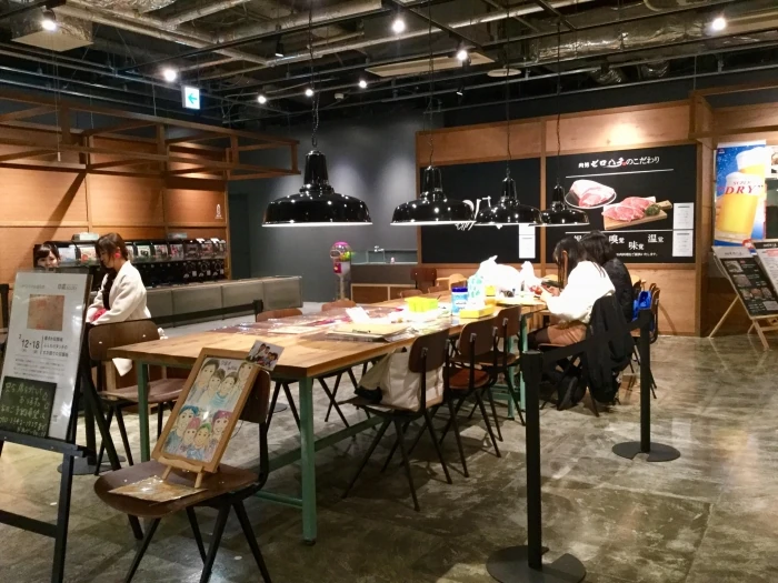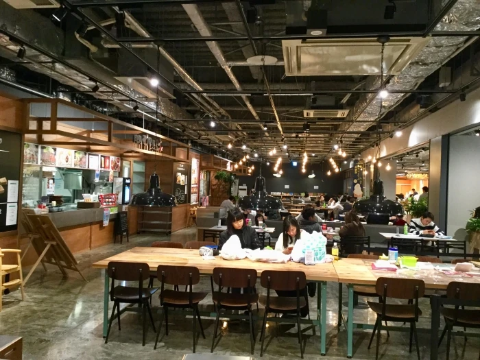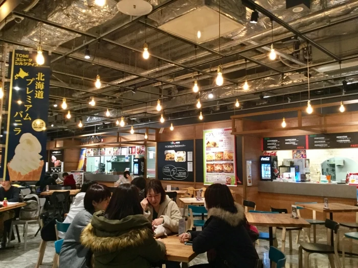 →オシャレなフードコートには多彩なテーブルがズラリ。