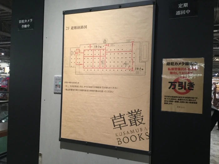 →草叢BOOKSロゴが輝く入り口。入り放題で開放的!