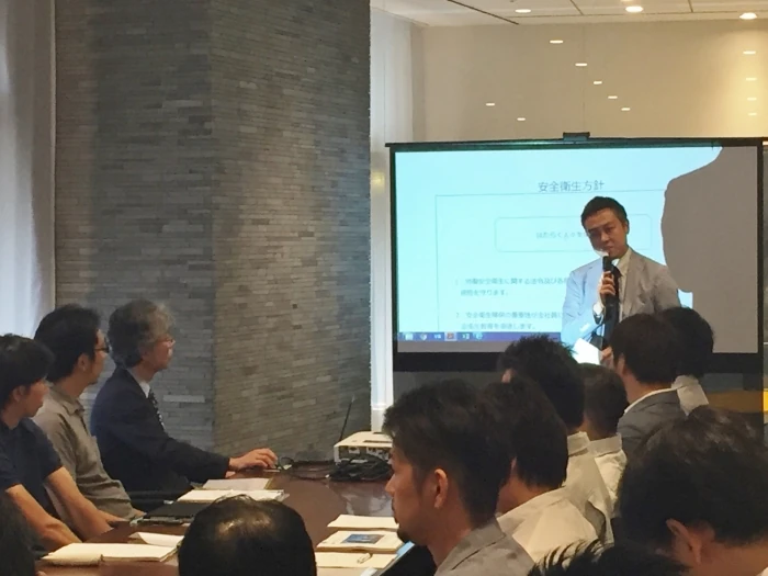 国の定める労働安全衛生法に基づき、事故や怪我がないように、また猛暑の中や粉塵の中での作業で健康被害が起きないように、これまでの報告などを踏まえ今後の施工現場においての安全衛生の方針を策定しております。