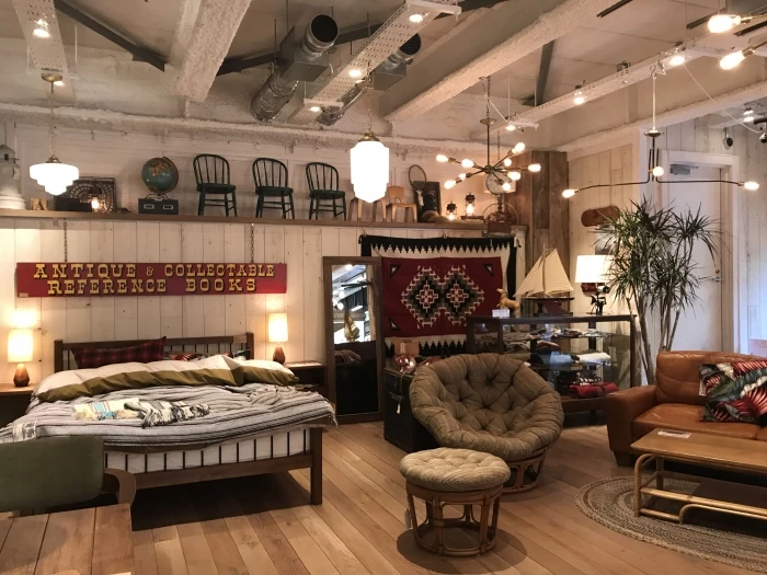 おしゃれな雑貨はもちろんのこと、天井もスケルトンになっている為