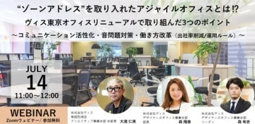 【7/14オンラインセミナー】“ゾーンアドレス”を取り入れたアジャイルオフィスとは? ヴィス東京オフィスリニューアルで挑戦した3つのポイント