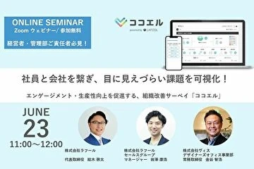 【6/23オンラインセミナー】社員と会社を繋ぎ、目に見えづらい課題を可視化! エンゲージメント・生産性向上を促進する、組織改善サーベイ「ココエル」