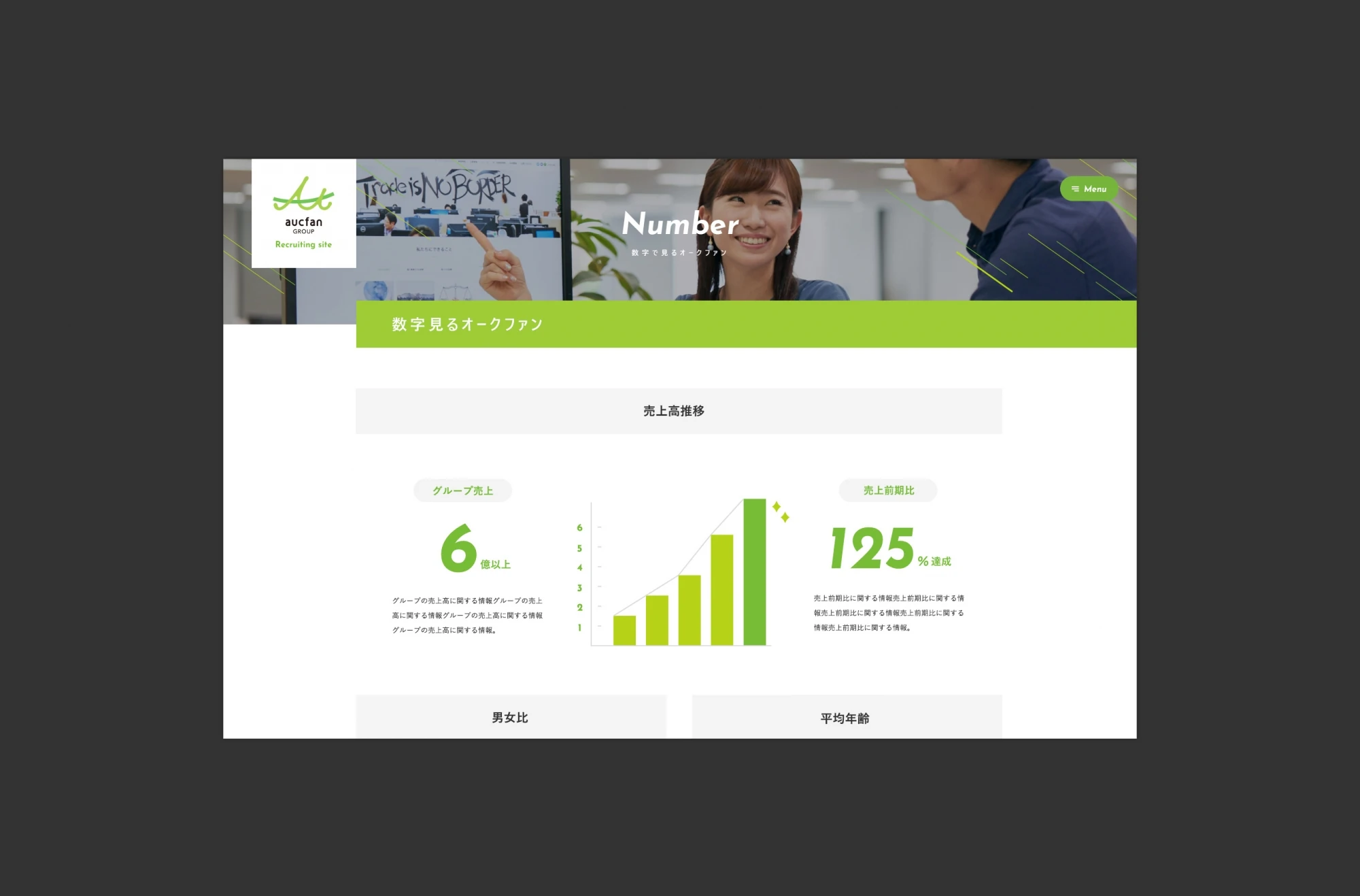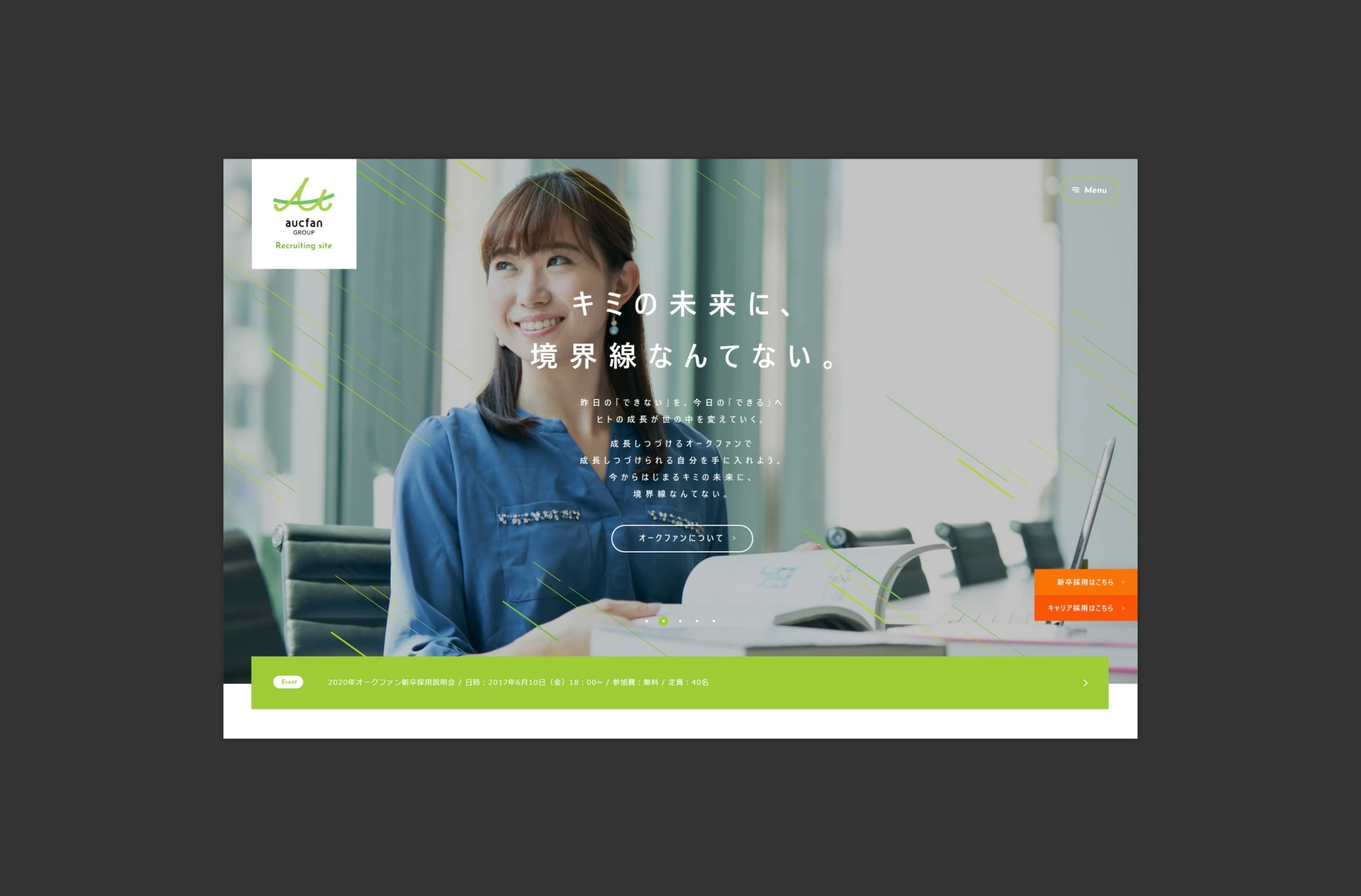 ブランドイメージを統一させる目的で、オフィス移転プロジェクト、コーポレートサイトの構築に続き、採用専用サイトの構築のご依頼をいただきました。この採用サイトを通して、応募いただきたい人物像の明確化からキャッチコピーを一語一句検討するような細部の構築まで「どんな言葉が響くのか」「どんな言葉がオークファンをより的確に伝えることができるのか」と、検討を重ね、こだわり抜きつくり上げました。採用は、入社いただいてからが本当のスタート。入社いただく予定の応募者の方に、より鮮明かつ的確に働くイメージを 想起いただきやすくすることで、入社後にギャップが生じないよう、写真は全てオフィス内で撮影しました。鮮明に想起していただける写真コンテンツを充実させることはもちろん、「社員インタビュー」や「数字で見るオークファン」という読み込むことができるコンテンツも充実させることにより、応募者に「働く場所としてのオークファン」を理解いただけるように構築しています。