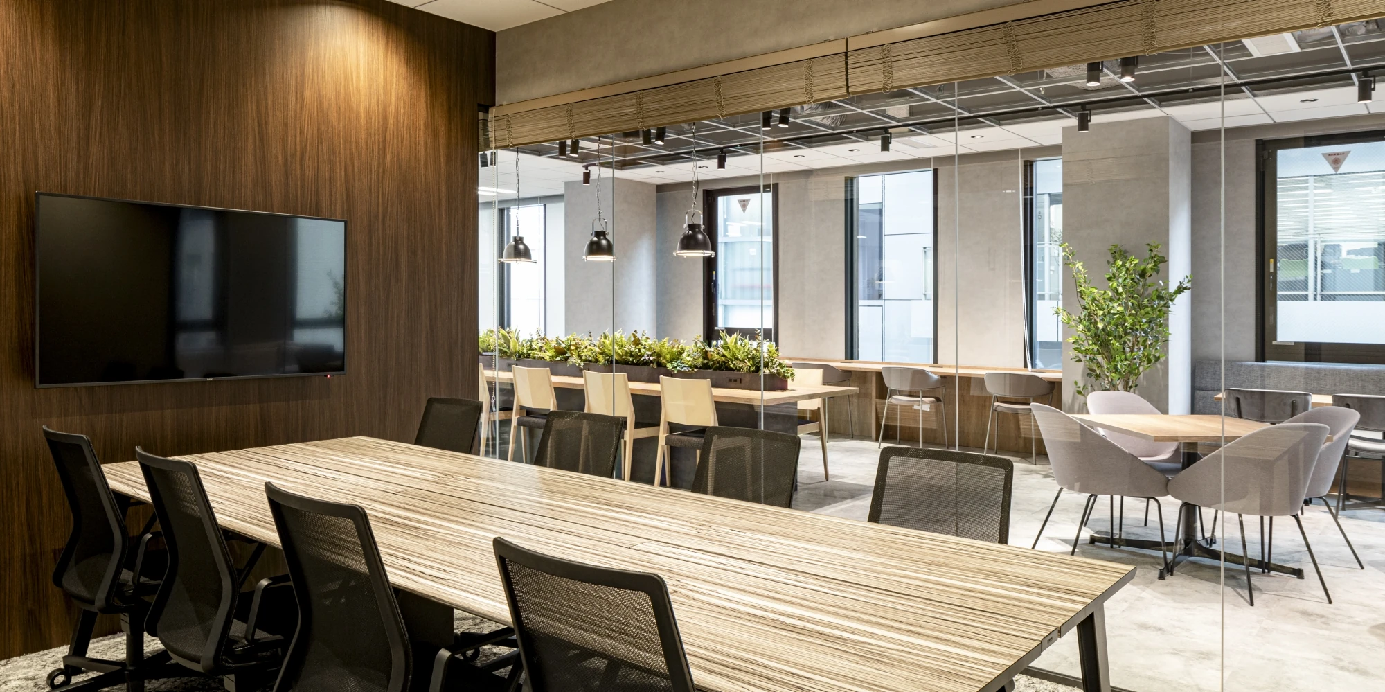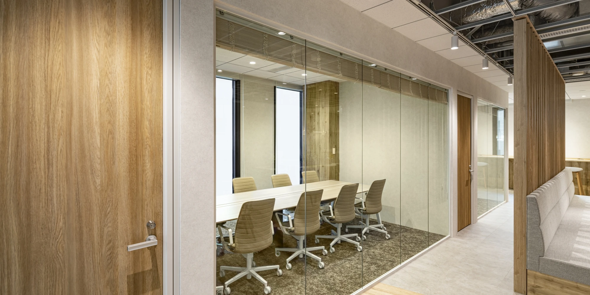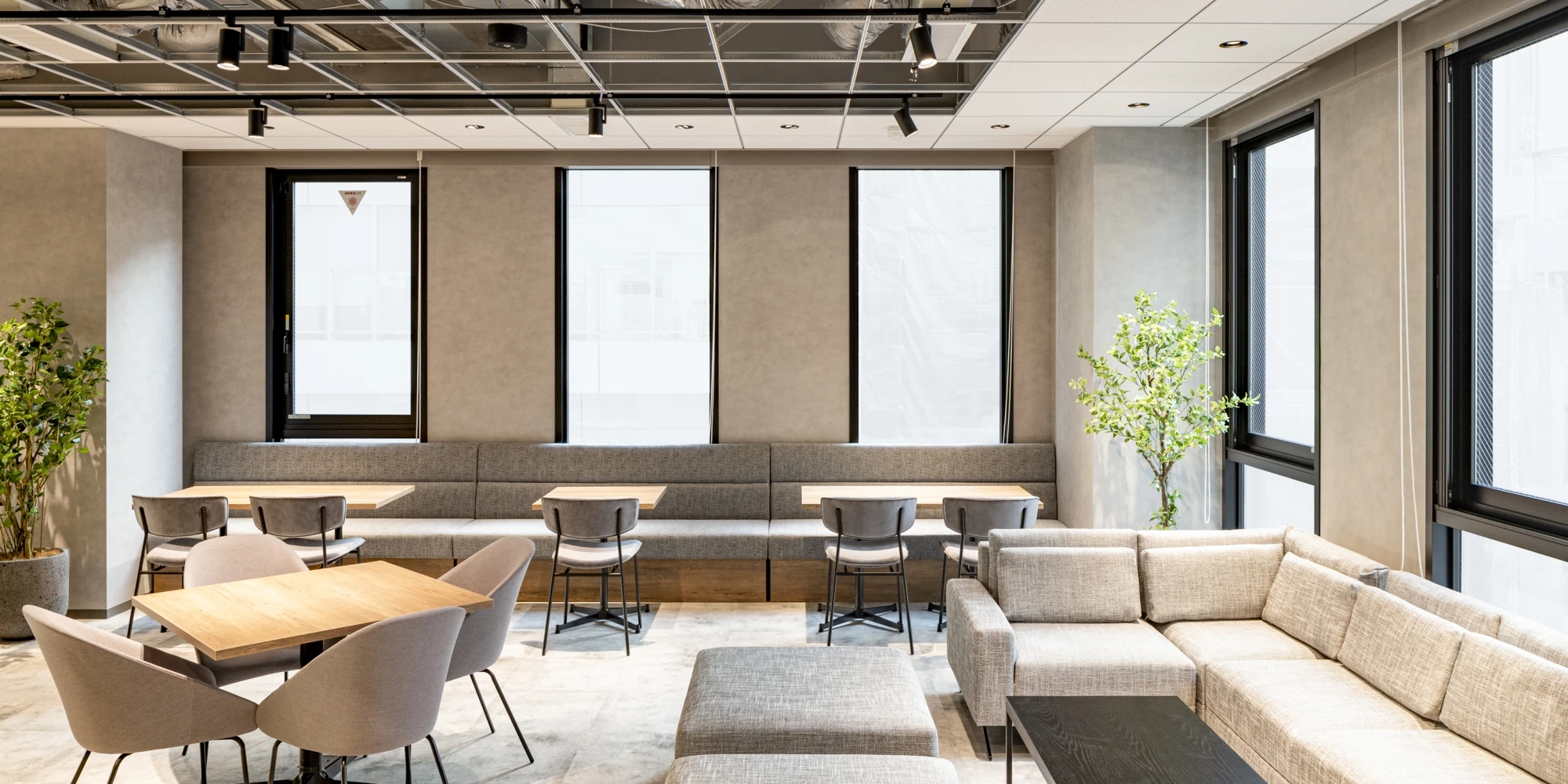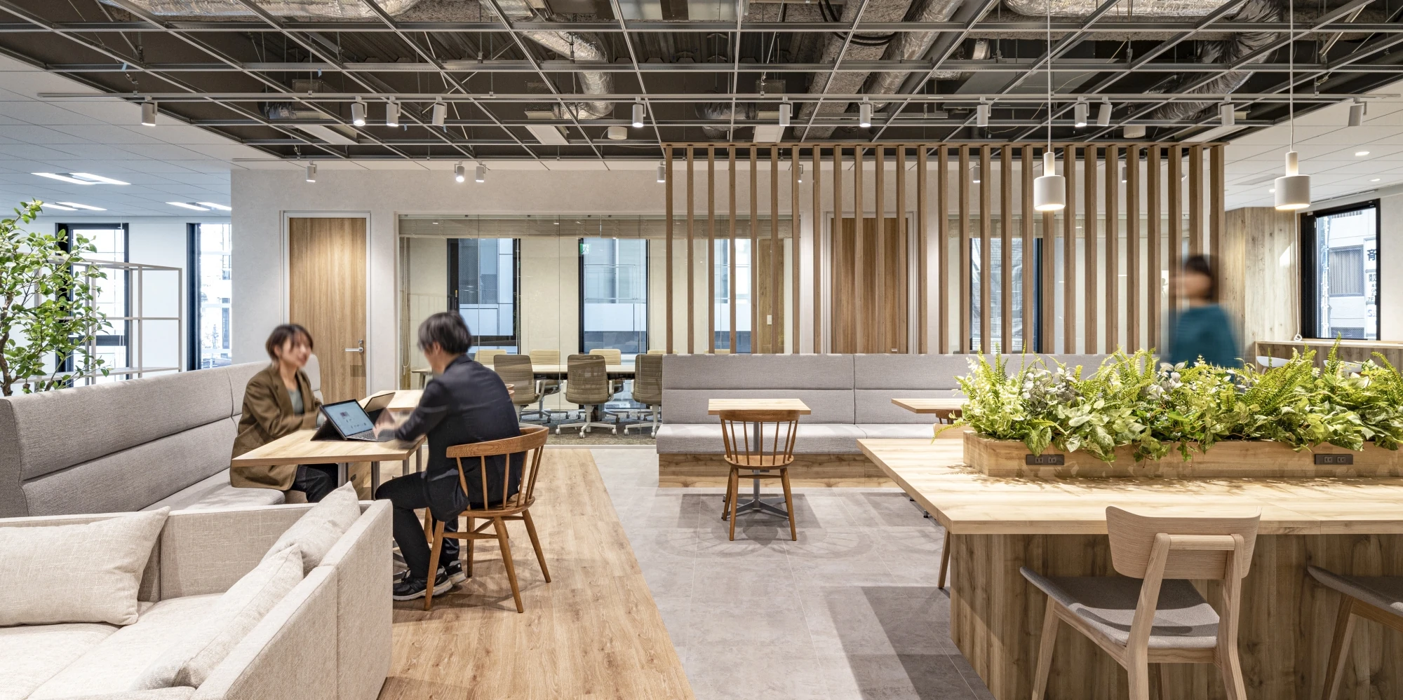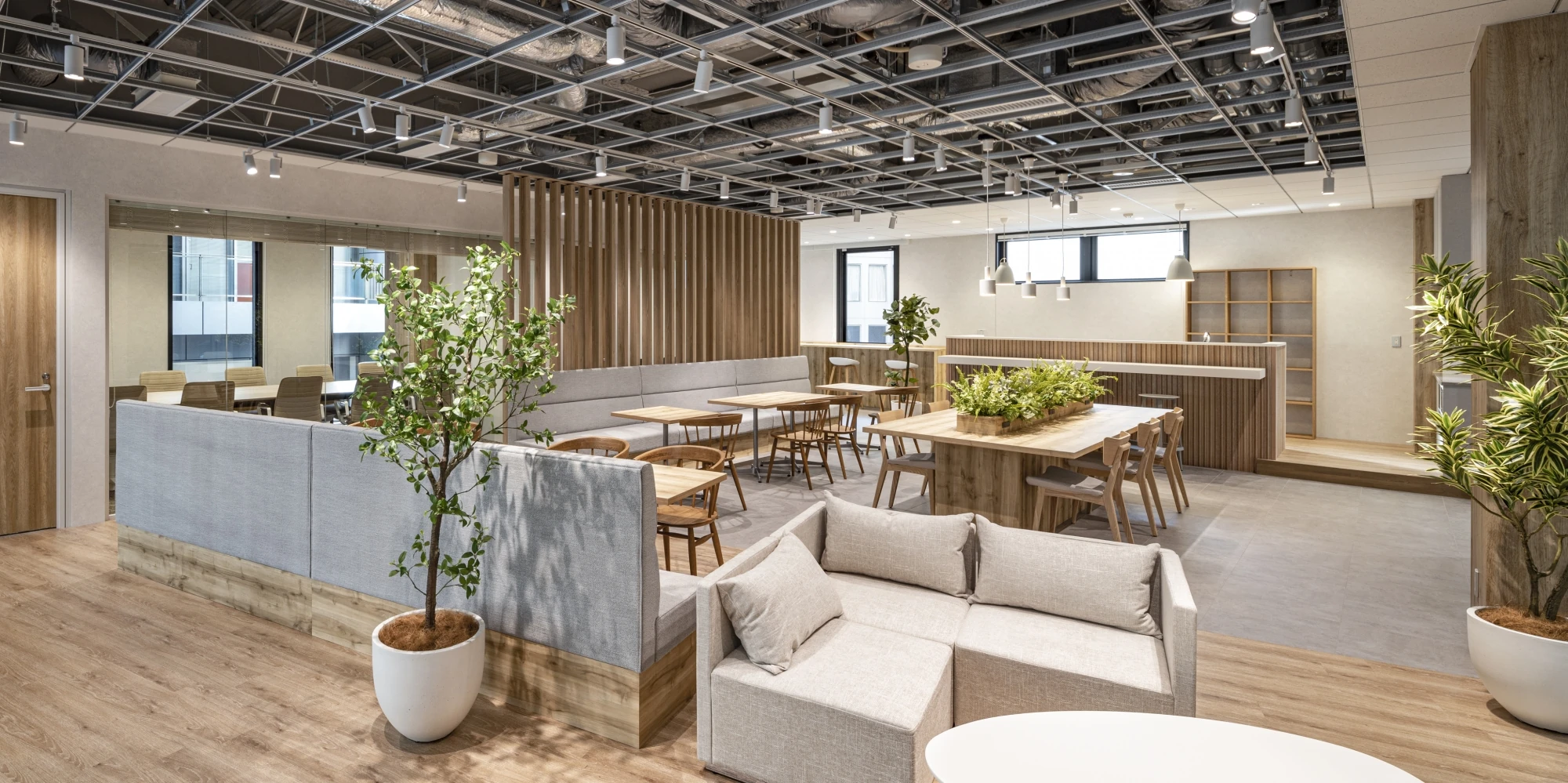 フロアごとにテーマのあるデザイン。自由にレイアウトできるハーフセットアップオフィス