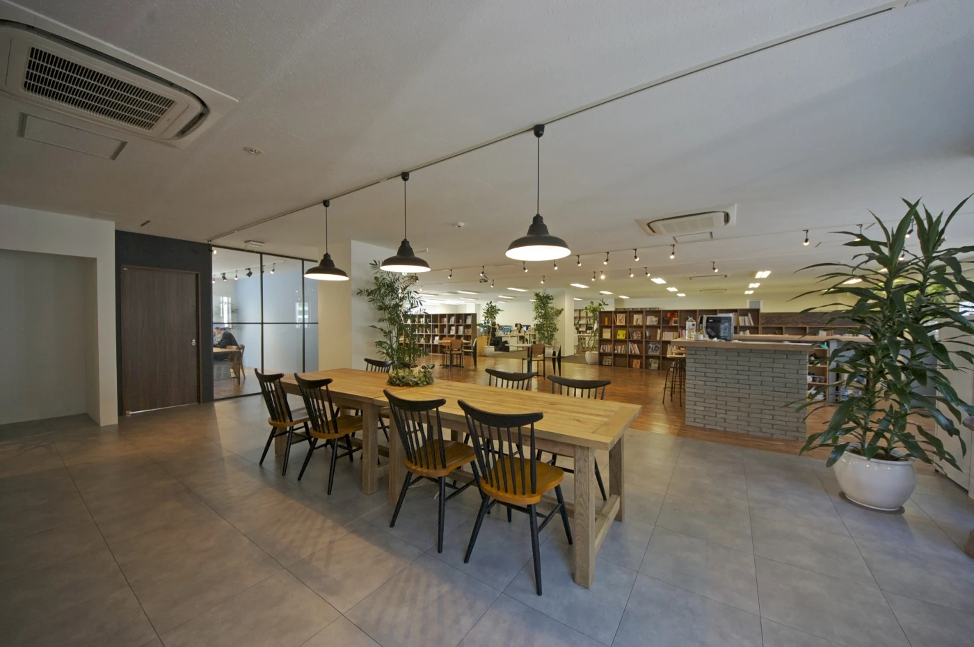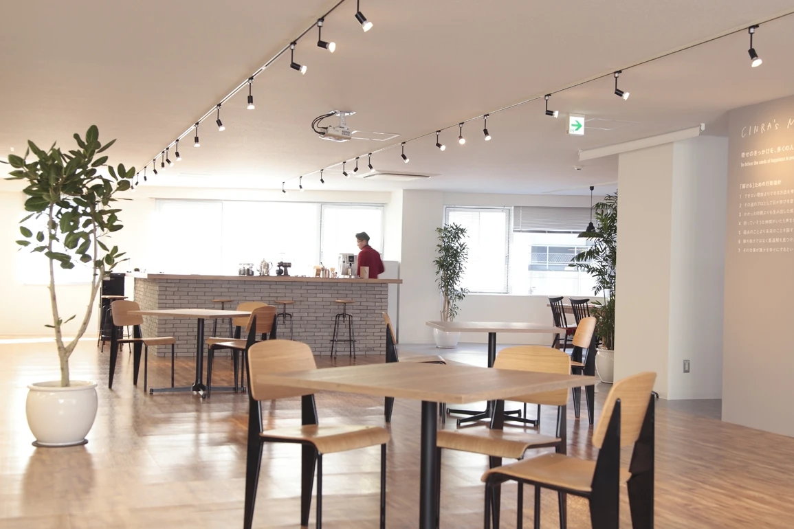 オフィスに入ると、カフェを連想させる空間が広がっています。社員の皆様が心地よく働ける空間、社外の人が気軽に遊びに来れるようなオフィス創りを目指しました。