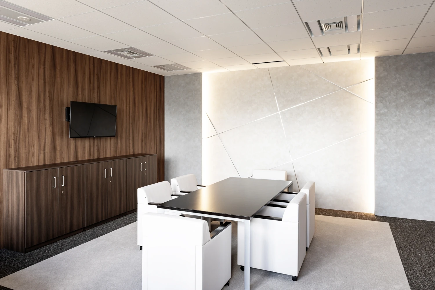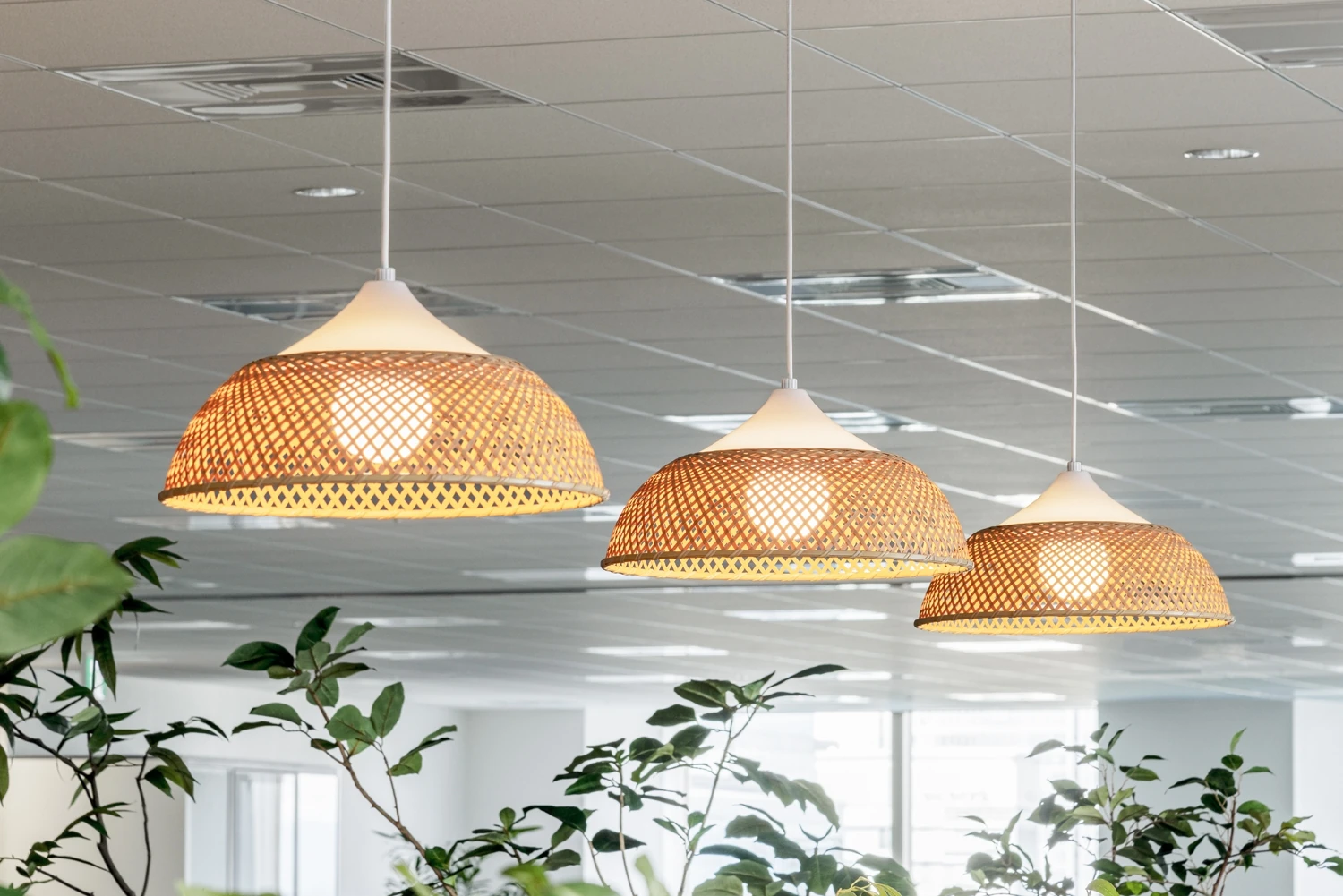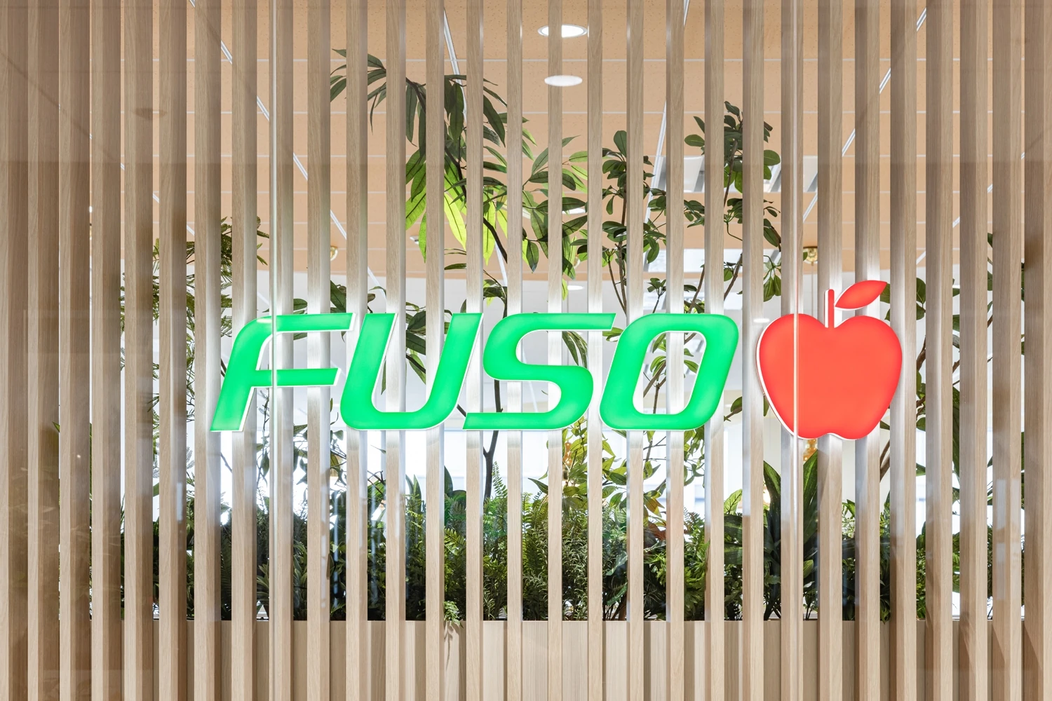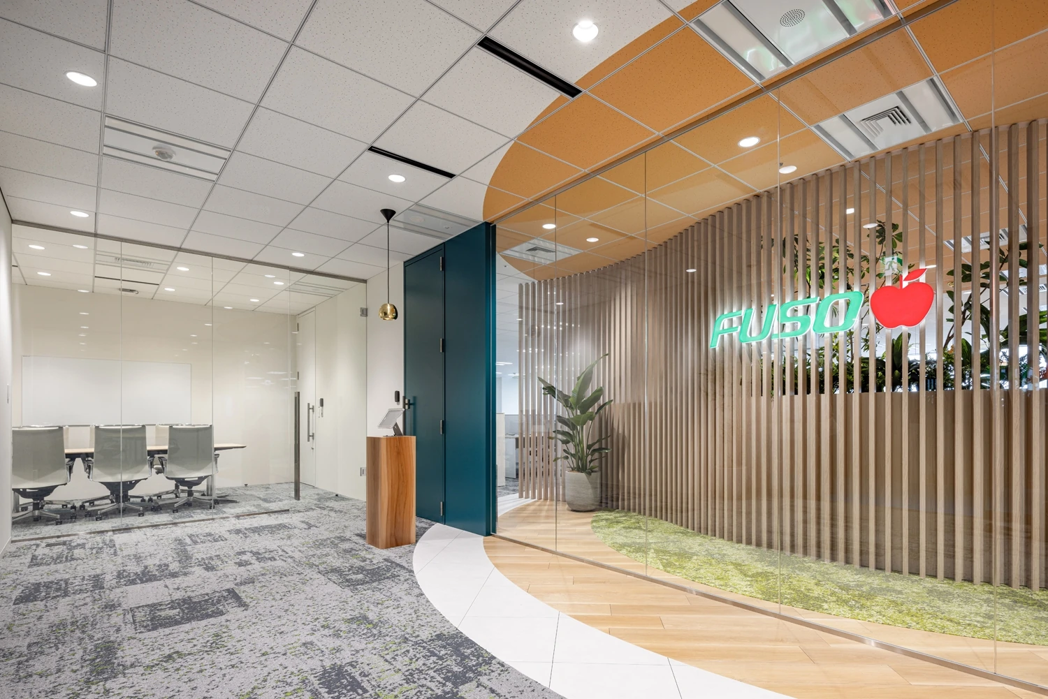 帰属意識醸成のため、コーポレートカラーであるグリーンと白を基調に温かみと信頼感を演出。さらに自社事業への誇りをもてるよう、エリアごとに果実酸をモチーフとした天井塗装を施しました。固定席をベースに眺望の良い窓側に集中スペースを多く配置しており、その日の気分や仕事内容に応じてはたらく場所を選択できます。中央にはパントリーとリフレッシュエリアを設置しており、メンバーが集まり交流がしやすいレイアウトです。