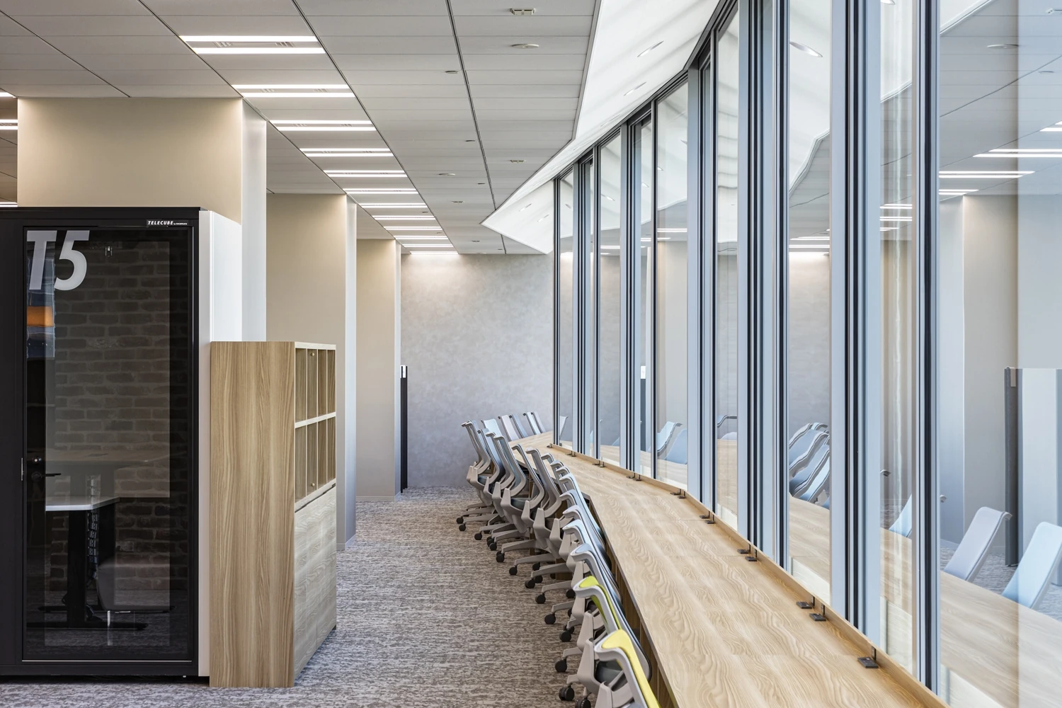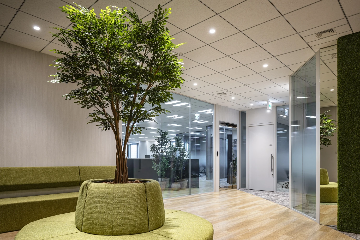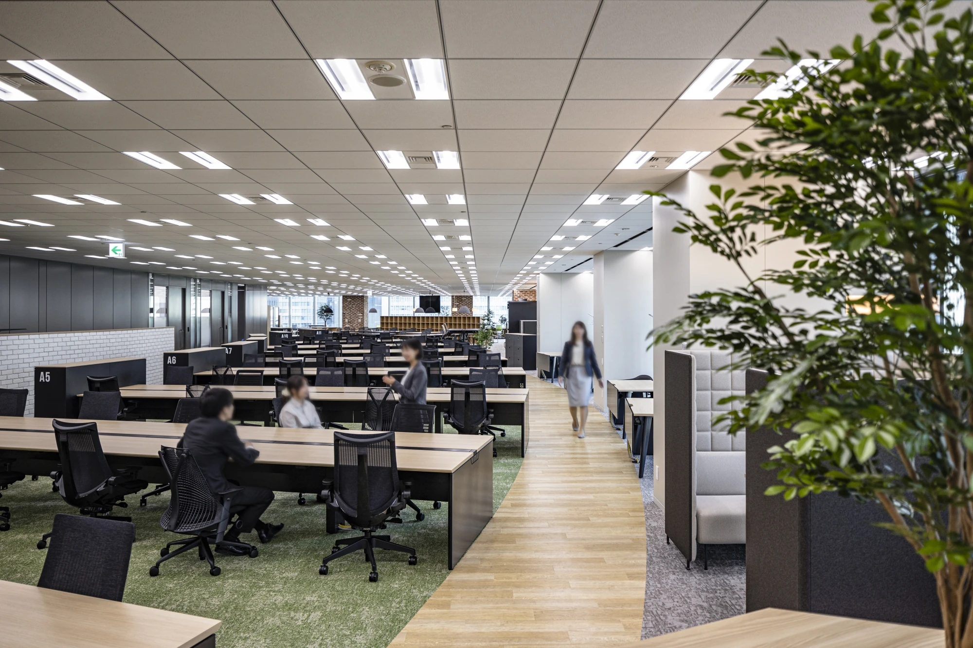 ご移転後、お客様からは「フリーアドレス席により、整理整頓の習慣がついた」「以前は個室の部署に相談に行くときは緊張したが、フリーアドレスになって相談しやすくなった」「事務所内で昼食をとる場所にも困らず、面積の削減を感じない」等の声をいただきました。