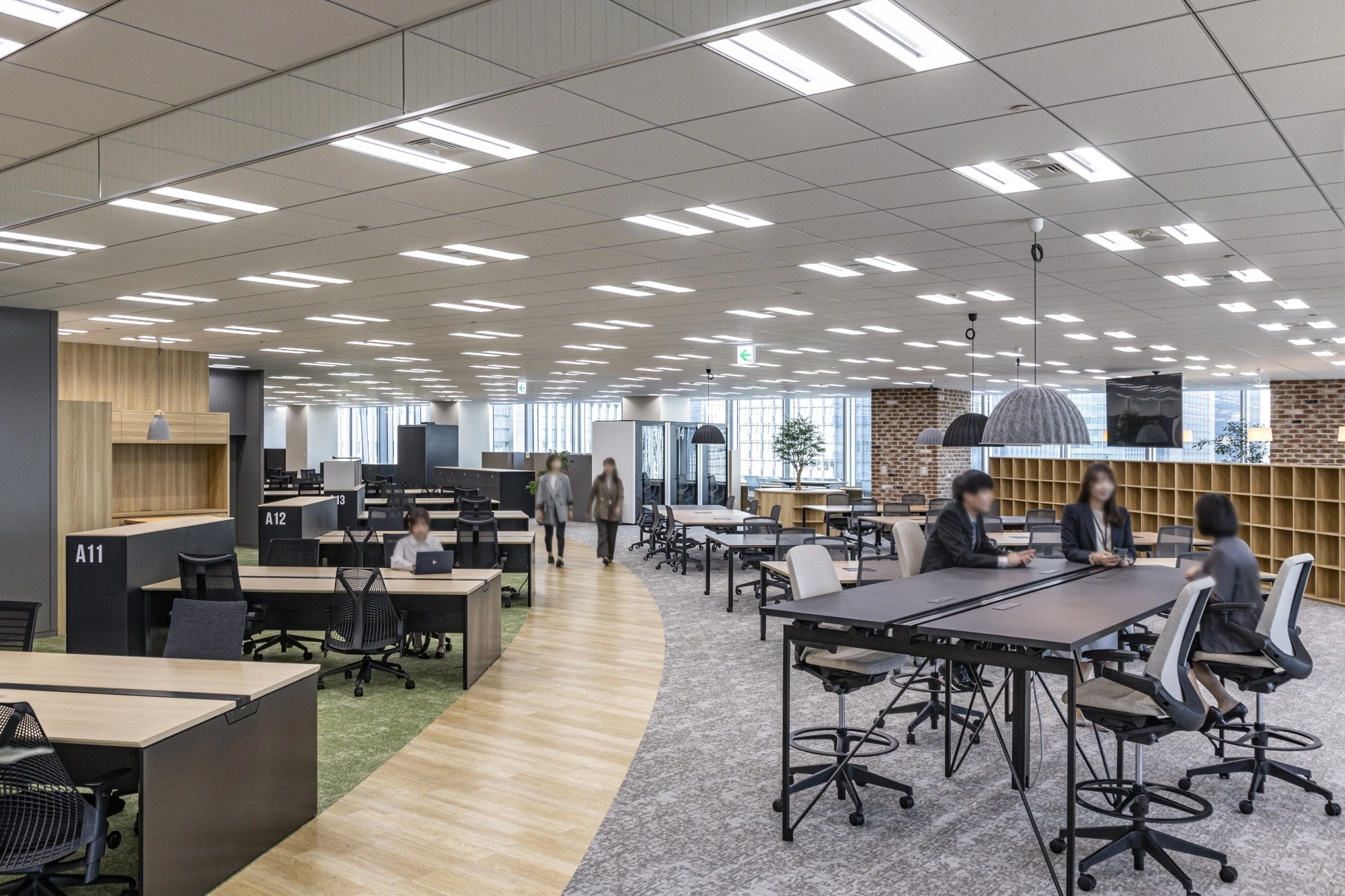 総合的ワークスタイルの変革として、在宅勤務制度の導入やペーパーレス化・フリーアドレス化などワークライフバランスと業務の効率化の両立に取り組んでいた日本曹達様。今回、移転を機に社員が出社したくなり個性が発揮できるオフィスの構築を目指しました。 -