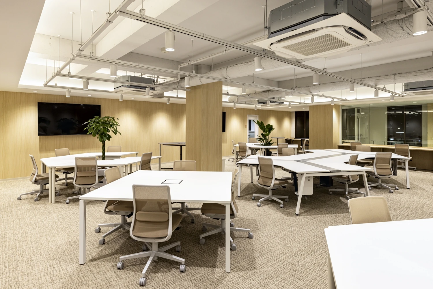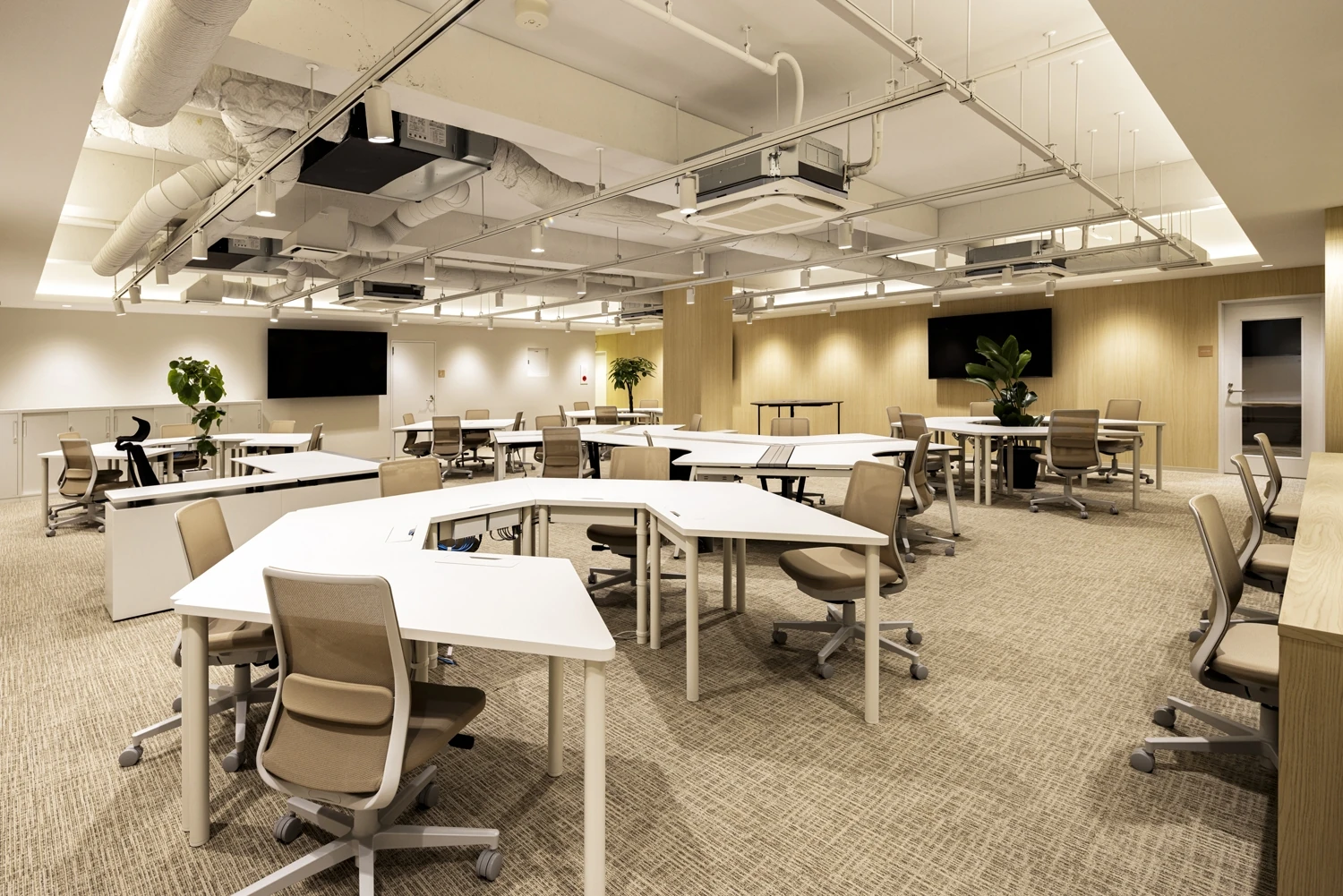 MKタクシーのコールセンター移転プロジェクト。エムケイ様の事業を次の段階に進めるため、執務環境の改善を図りました。人員配置の多いコールセンターは執務空間と休憩室が手狭になりやすく、基本的な執務環境の改善が課題とされていました。 -