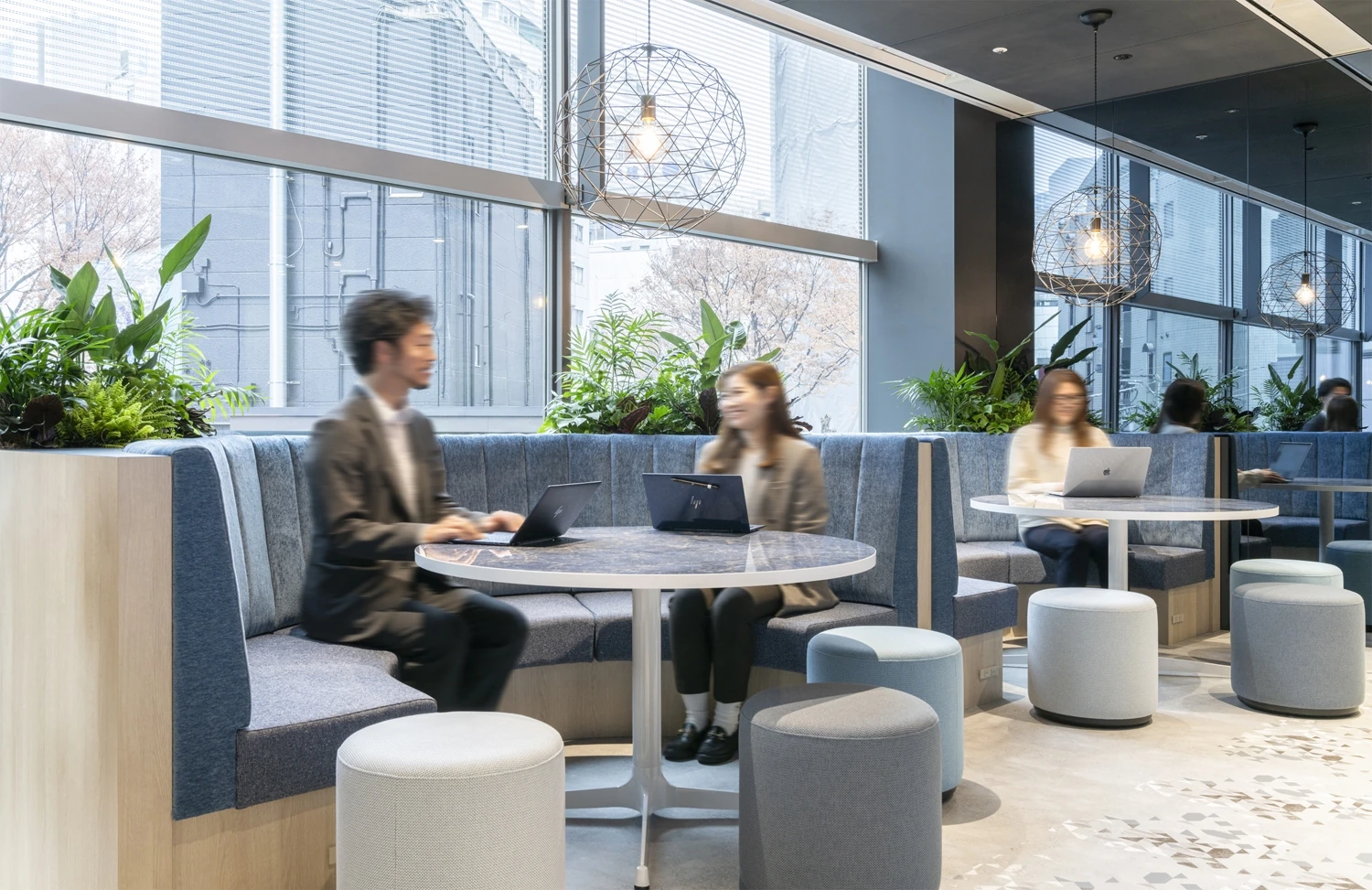 新オフィスのコンセプトは『100×10(ワンハンドレッド タイムス テン)』。「炎は10,000℃を超えると青くなる。一見冷静な見た目の炎は確かな温度と熱をもって、消えることなく燃え続ける。熱い想いを持った人が絡み合い、より高温で消えることのない確かな内なる炎を一人ひとりが感じ、社外にも影響を及ぼすほどの熱狂を連鎖させる」という想いを込めました。