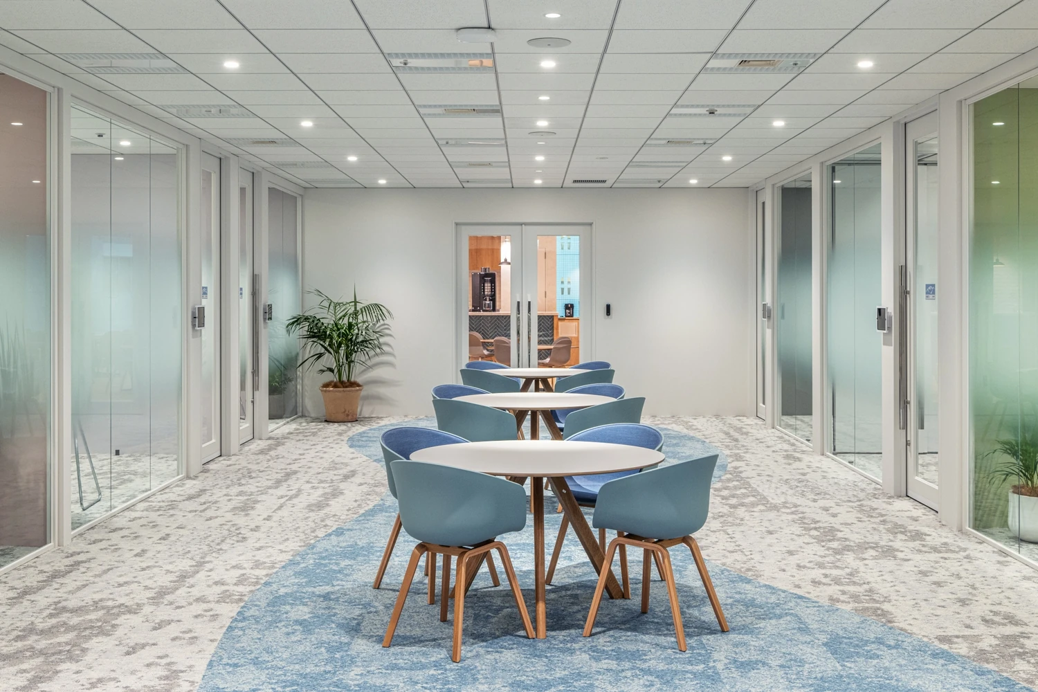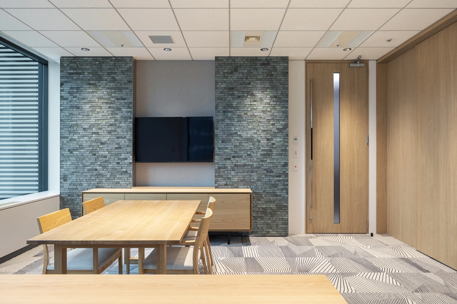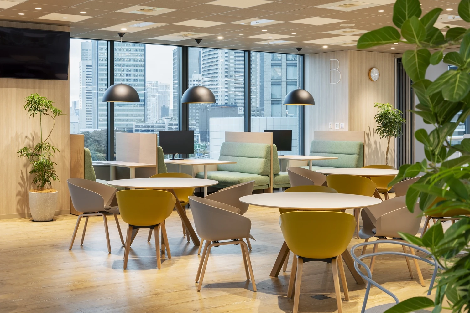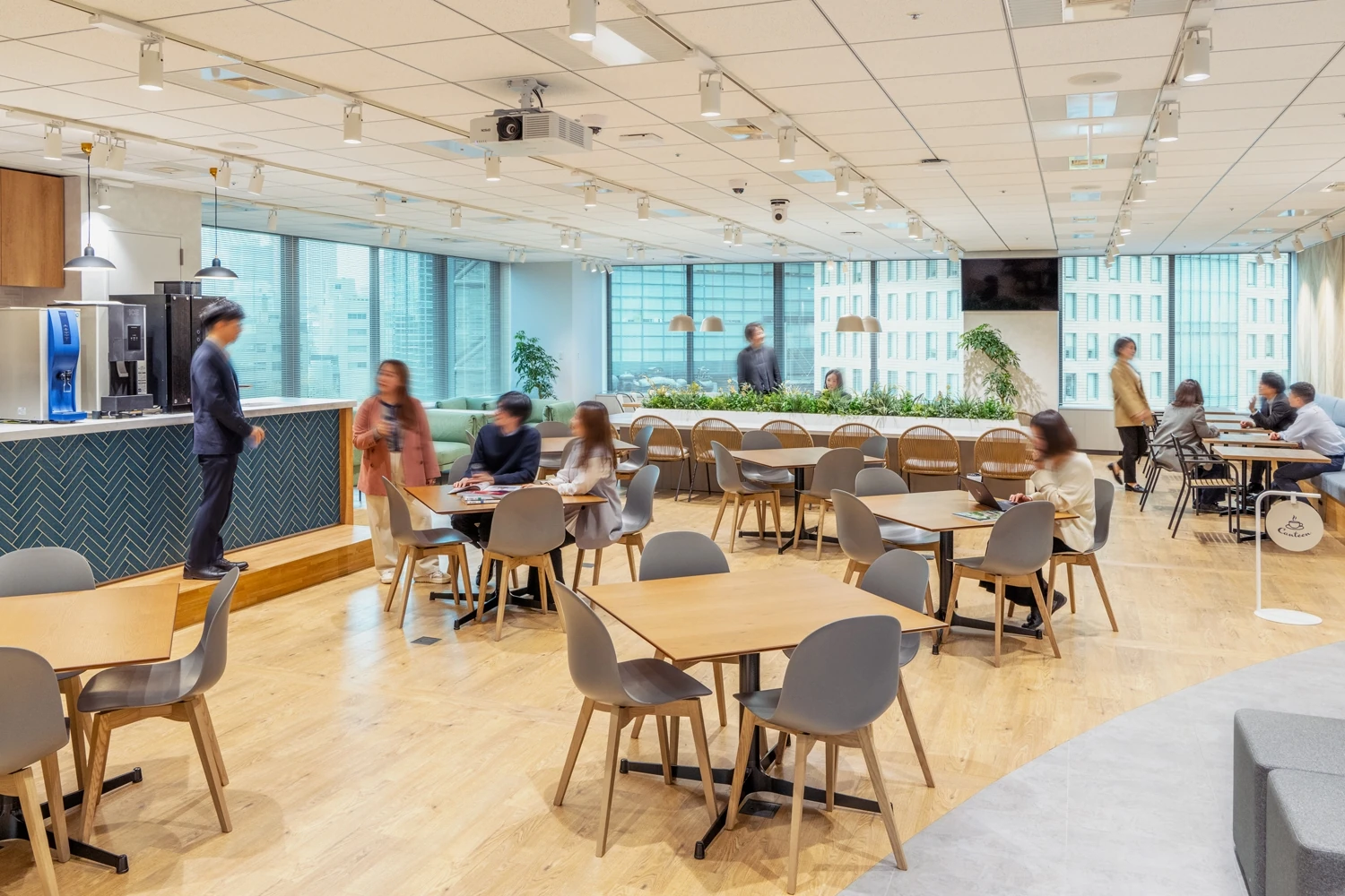 新オフィスは「流れを変える」第一歩として、デザインコンセプト『MACHI』のもと設計しました。街を歩くと、さまざまなヒトやモノからインスピレーションを受け、感性が磨かれ、新しいアイデアや発想を生み出していくことができることから、このコンセプトを導きました。バルブメーカーから港町をイメージし、エントランスをPORT(玄関口となる港)、飲食エリアをCANTEEN(港近くの食堂)としてデザイン。複数フロアから1フロアになることもあり、より一体感を醸成できるようプランニングしました。フリーアドレスを導入し、どの席に座っていてもクイックに打ち合わせができるようミーティングスペースを点在させています。