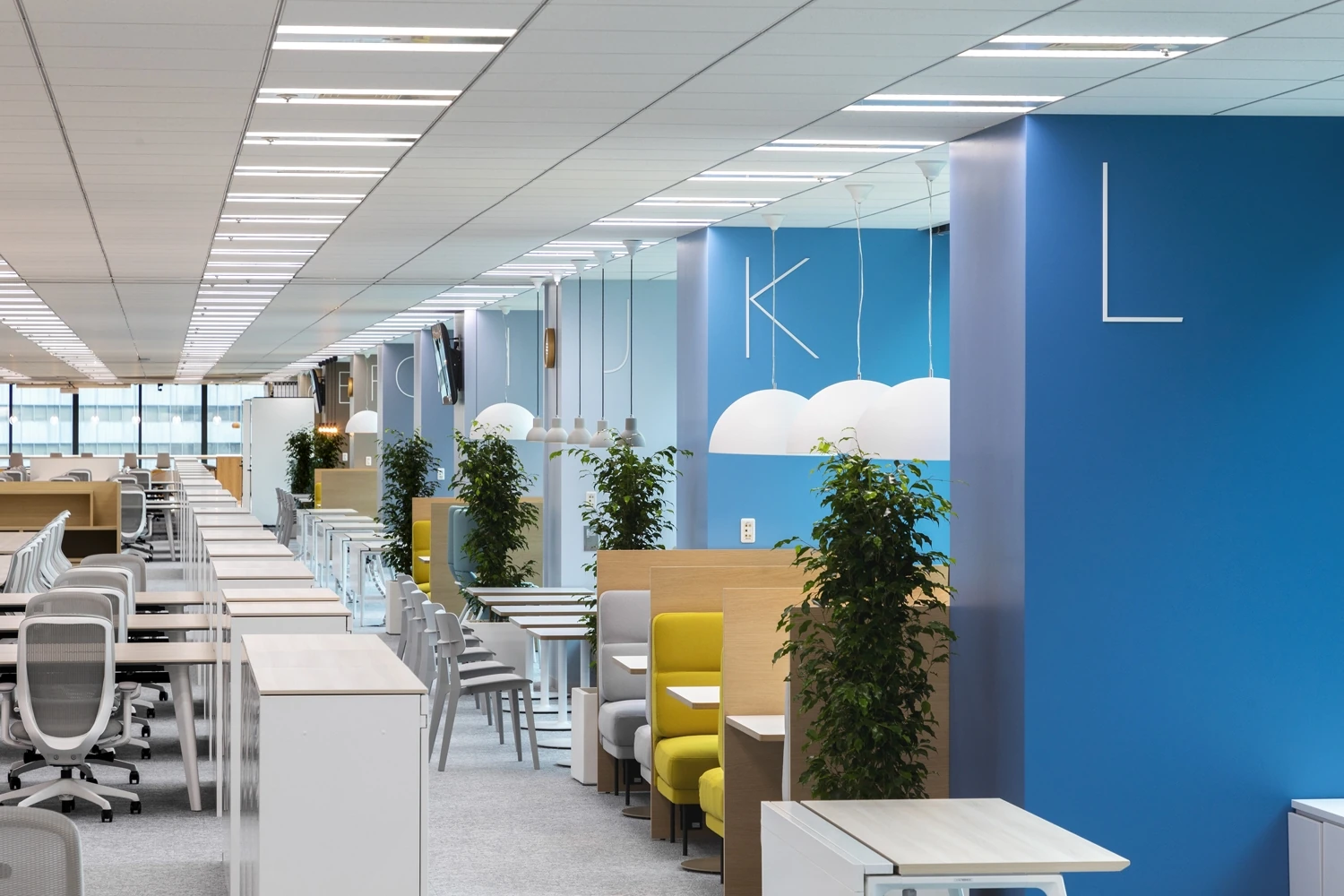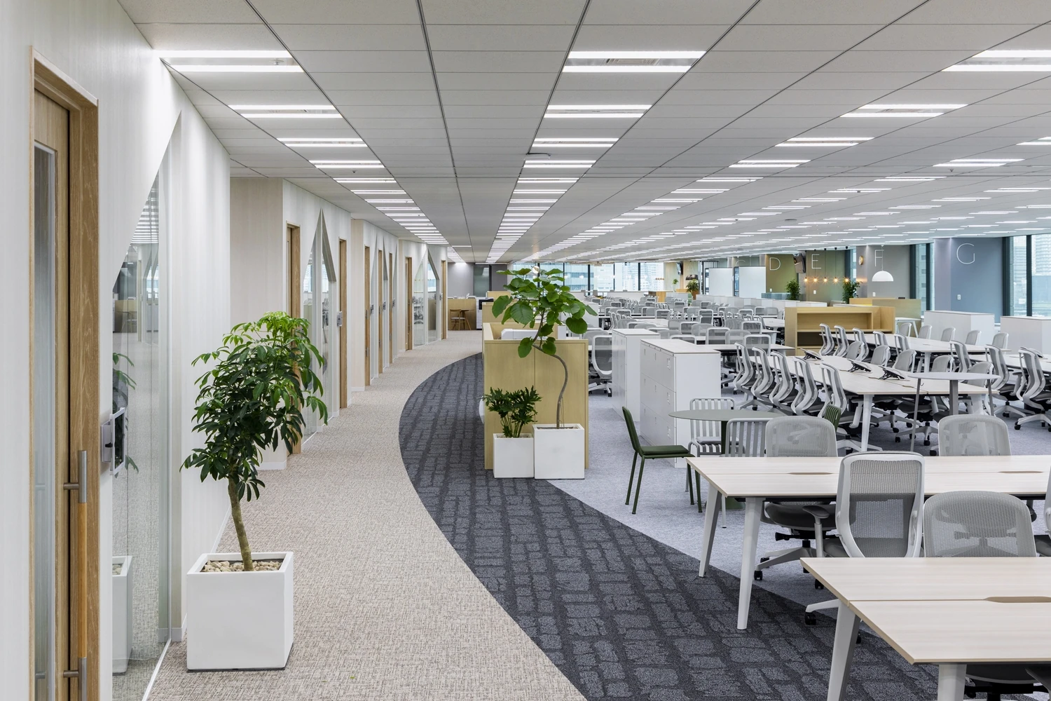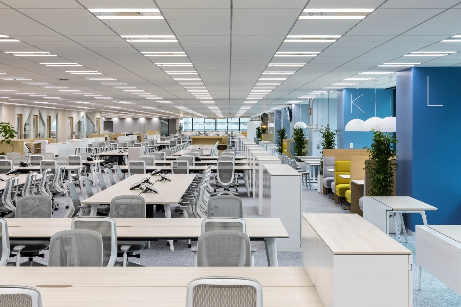 今までのはたらき方は、固定席運用で部署ごとにフロアが分かれていることによるコミュニケーション不足や書類を大量に保管していることなど、たくさんの課題がありました。今回のプロジェクトでは「流れ」を変えるのテーマに沿い、ブランディング、フリーアドレス、ペーパーレス、出社率向上、コミュニケーション、生産性の向上を目指して、はたらき方の抜本的な改革を図りました。 -