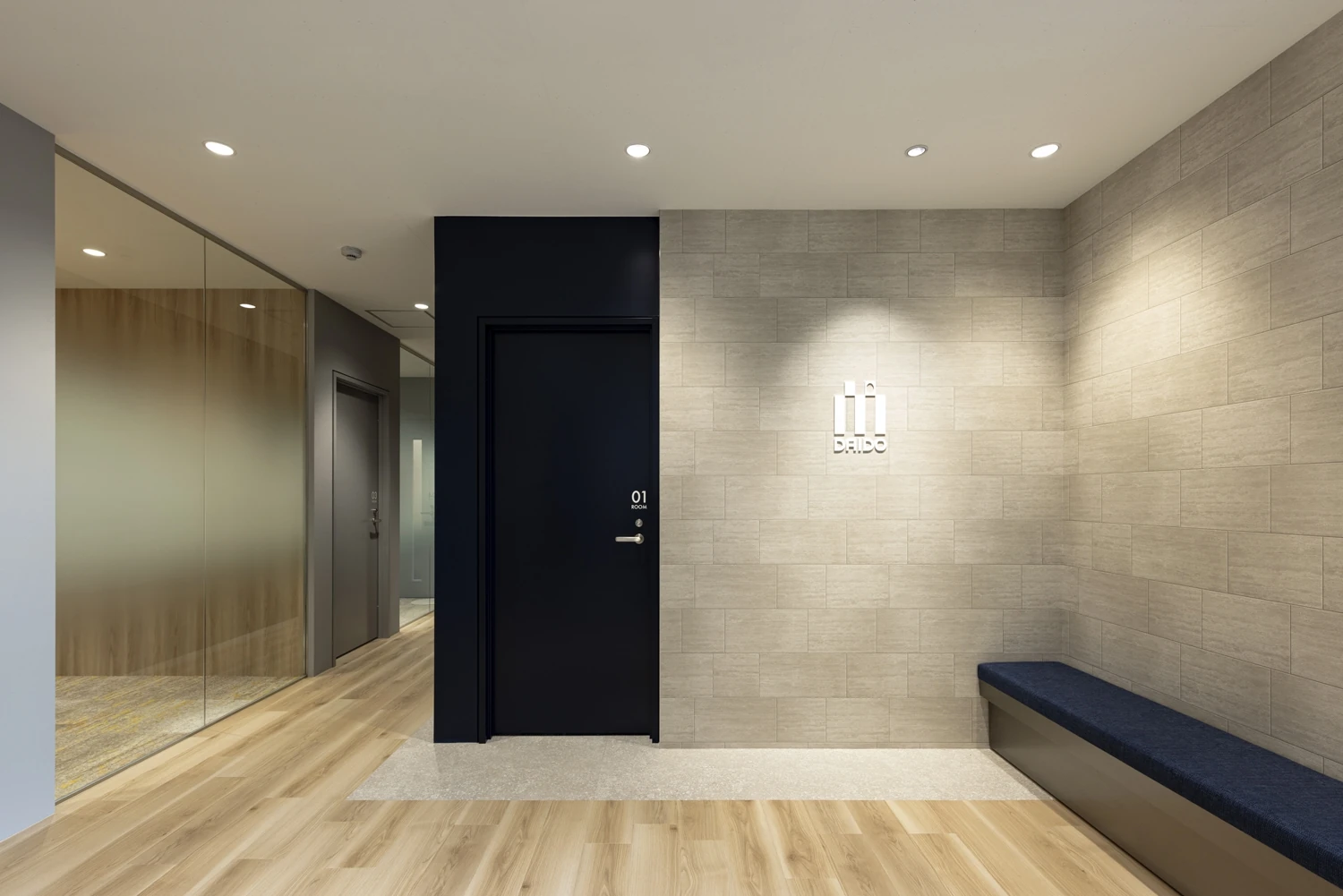 ダイドー様大阪支社の自社ビル改装プロジェクト。今後の拡大に向け採用強化を図る中で、駅から遠い立地という不安要素をカバーするため、オフィス環境の改善が求められました。また、老朽化した内装や設備をリニューアルすることで、これから入社する方はもちろん、既存の社員のエンゲージメントや労働環境を改善する狙いもありました。 -