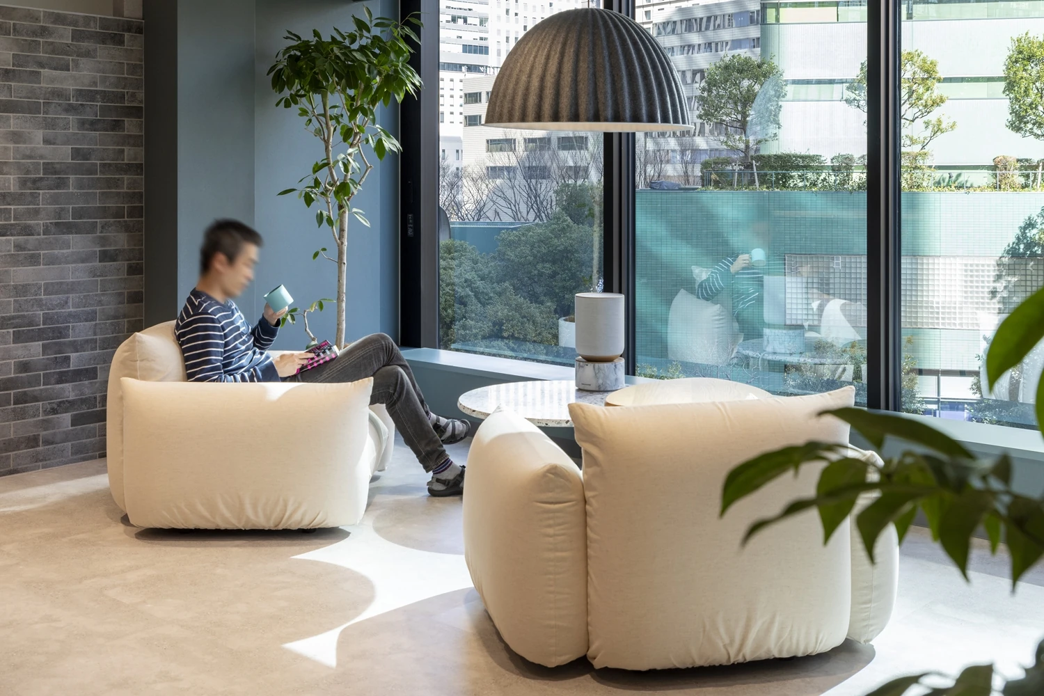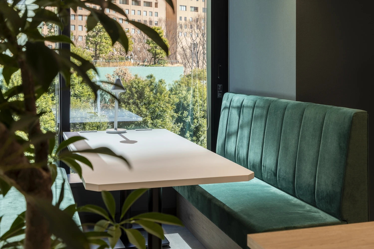 高層ビル内の区画でありながら、近くに広がる新宿中央公園の風を感じられるような、静かで居心地のよい守られた環境を実現しました。