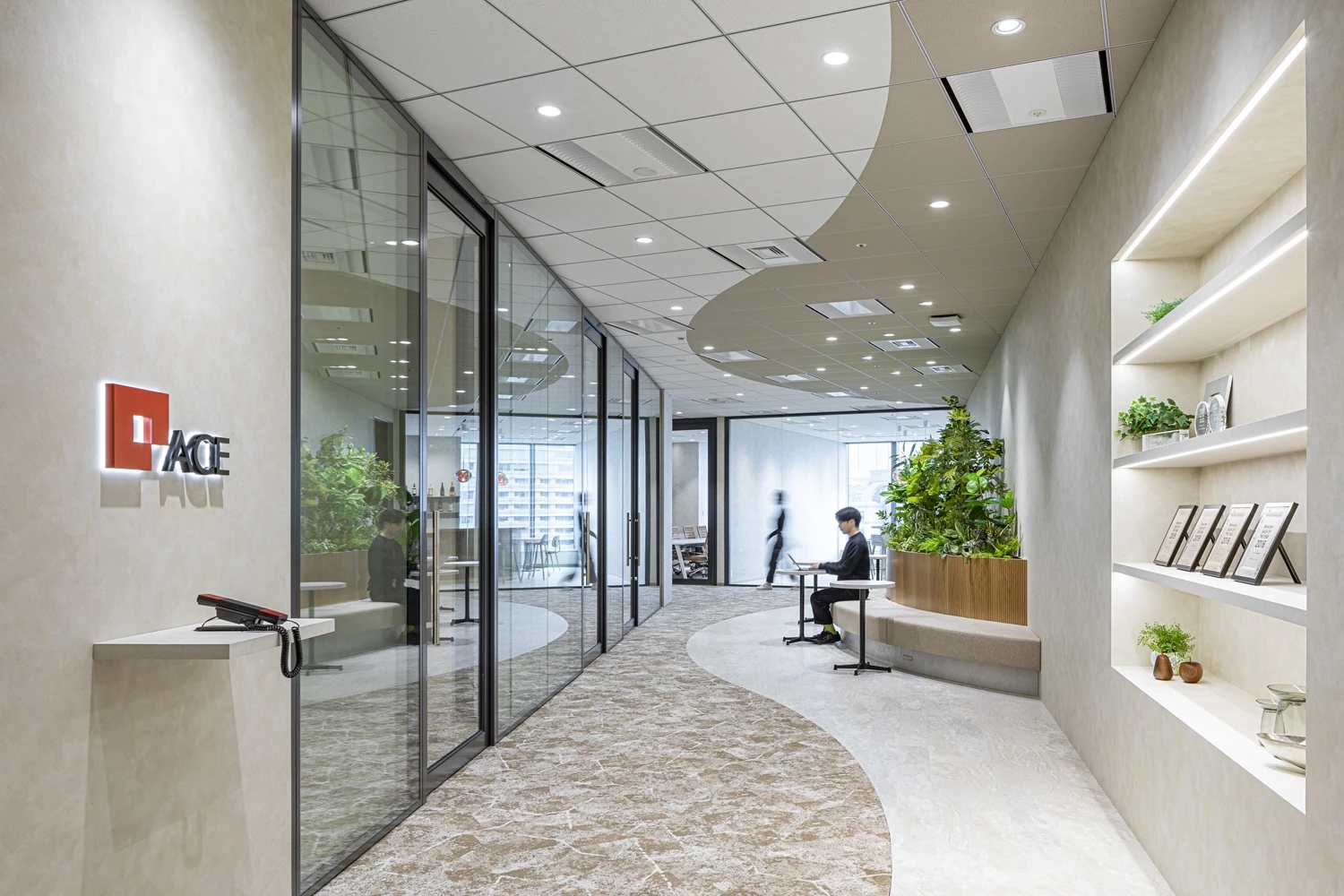 ECサイトの運営をされているエース様の竣工されたばかりの麻布台ヒルズへのオフィス移転プロジェクト。今後の事業成長の加速のため、「来ること」「来たくなること」をテーマにオフィスを計画。社員はもちろん、外部との繋がりをより強化することを目標に計画しました。 -