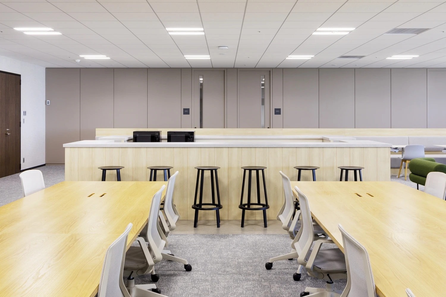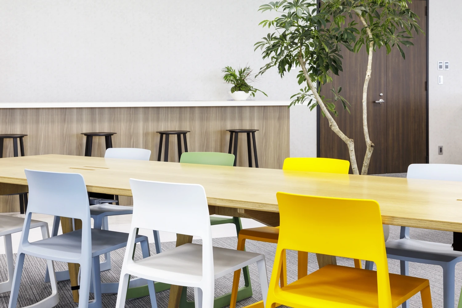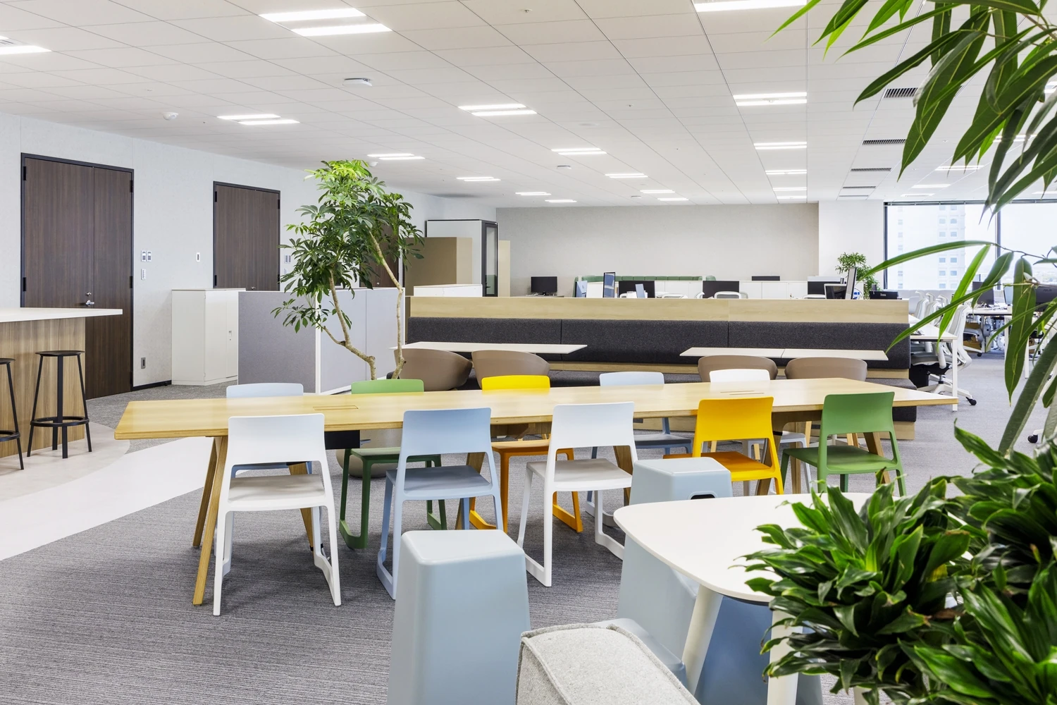 デザインは、明るく爽やかな色合いで統一され、オフィス全体に活気と温かみをもたらしました。