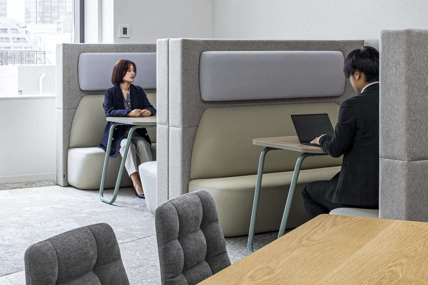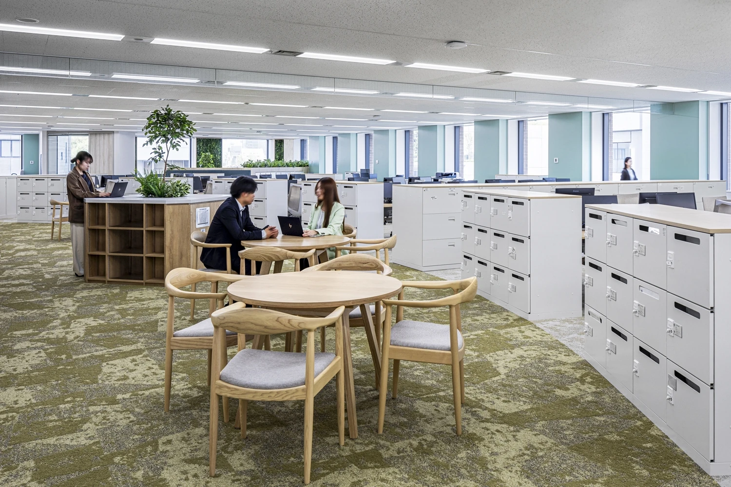 慢性的な打合せスペース不足やデッドスペース有効活用を目的としたJFEミネラル様の本社改装プロジェクト。それに加え、社員の声を収集し、デザインに反映させることで、従業員エクスペリエンスの向上を図りました。良質なコミュニケーションが生まれるオフィスを構築し、働き方の多様化に対応できる環境を整えることで、社員がより快適にはたらける空間を設計しました。
