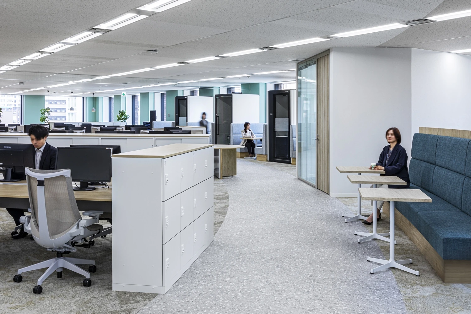 オフィスコンセプトは『Mineral Park』。Park(公園)とは、憩いの場であり複数の人が集い情報交換をする場でもあることから、ひらけた空間にそれぞれが思い思いの目的を持ち、お気に入りの場所を見つけられるようなワークプレイスとして設計しました。