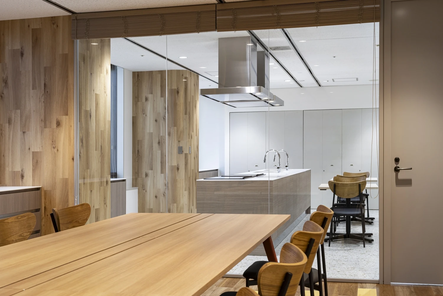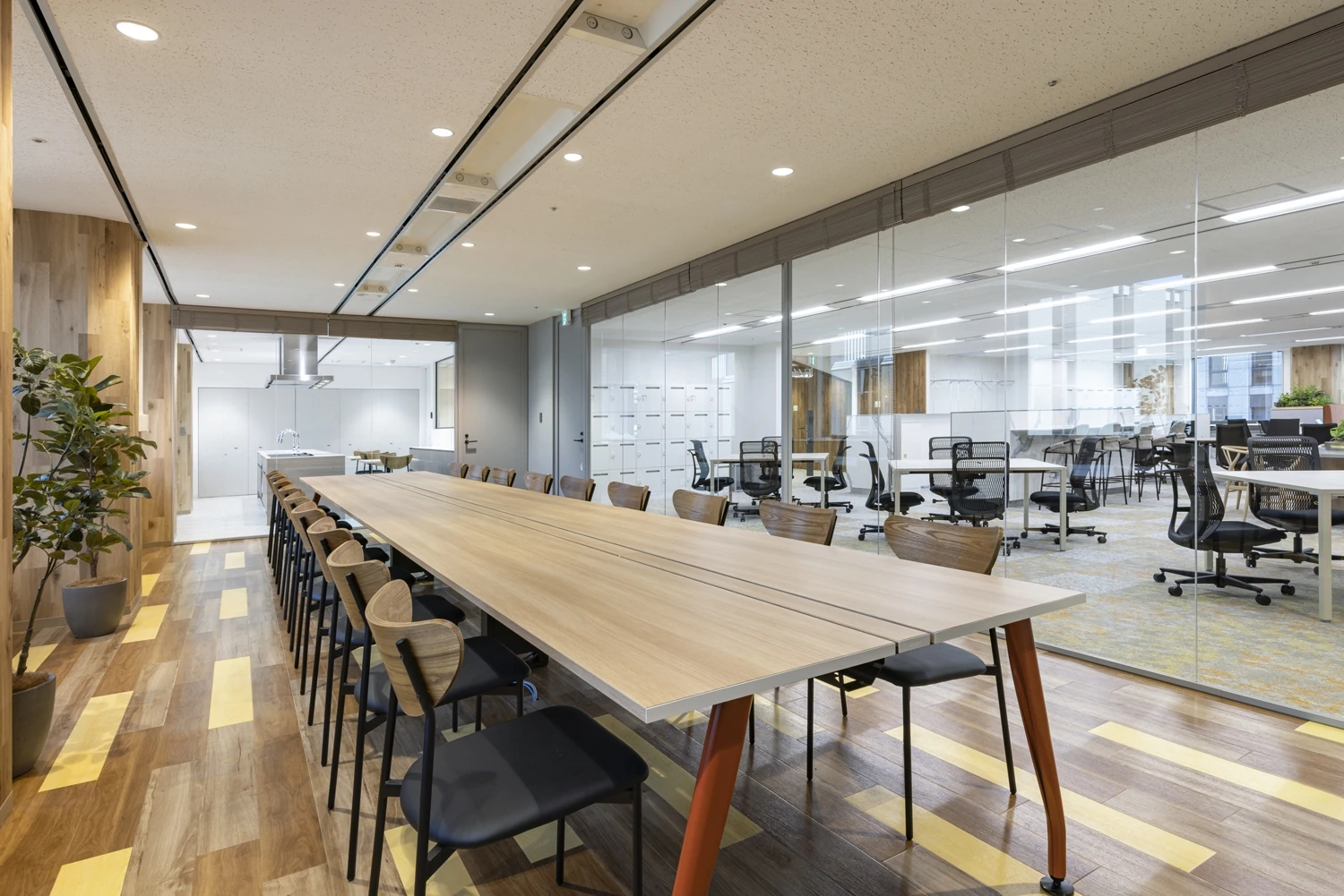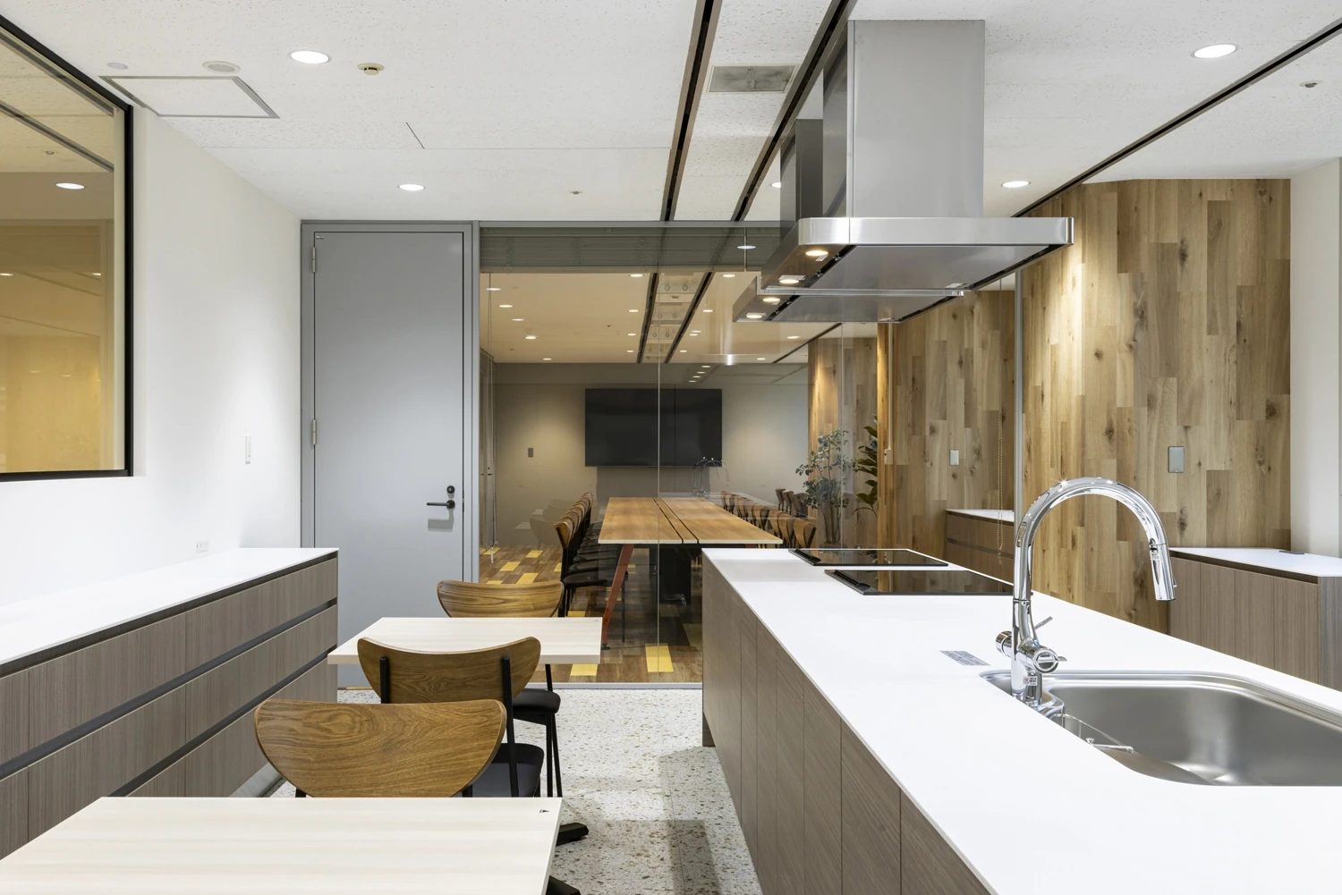 会議室越しには、テストキッチンを見えるよう配置する等、ハウス食品様ならではのエリアを見せることで『らしさ』が伝わるようゾーニング設計しています。