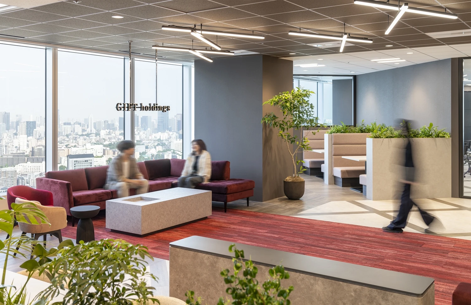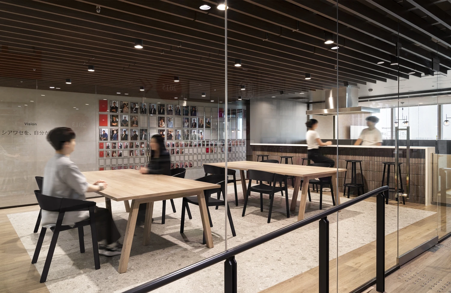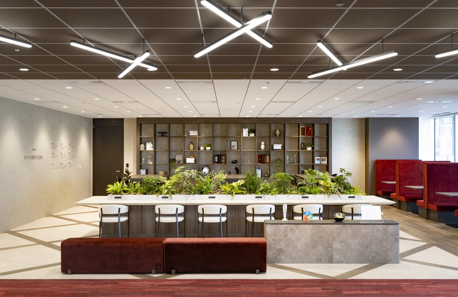 『町田商店』や『豚山』、『元祖油堂』等、ジャンルを問わずおなじみのラーメン店を多数展開しているギフトホールディングス様の移転プロジェクト。これからのグローバル展開や企業規模拡大のため、ブランディング強化と新卒採用強化、働きやすい環境を整えることを目的とし、”あこがれ”をもたせるオフィスの構築を目指しました。 -