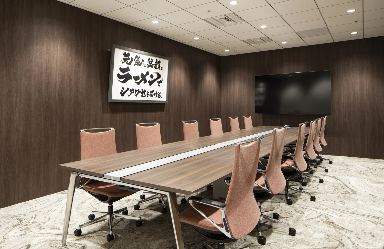各会議室はラーメンの具材を連想させるデザインで遊び心を取り入れ、打合せ時のアイスブレイクやアイデアの創出を助けています。