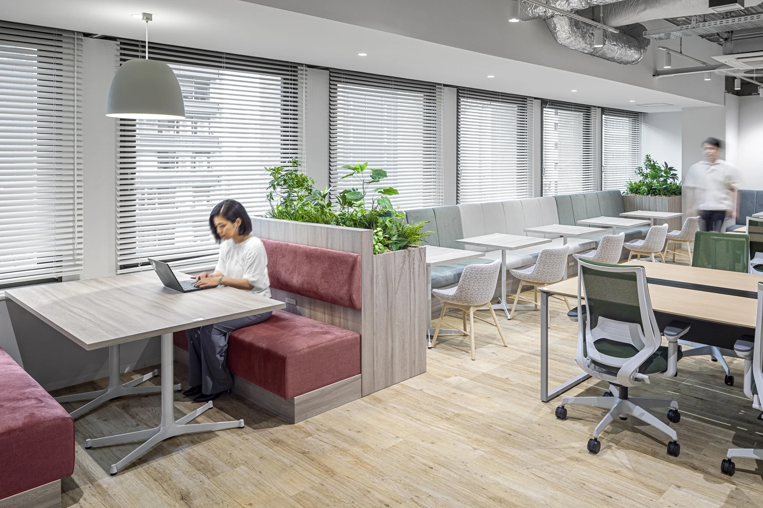 ワークスタイルはフリーアドレス運用とし、コミュニケーションを重視しつつも、一部はエンジニアによる実験スペースとしてレイアウトし、研究所のように没頭して働くことができるようにしています。家具も敢えてスチールなどのインダストリアルな雰囲気を採用し、見た目からも研究所を演出しています。