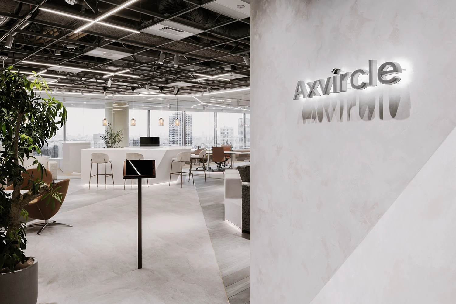 Axvircle様にとってのベストな働き方を模索していくために、新たな働き方やオフィスの使い方、技術などを取り入れながら、試行錯誤をしていくことが本プロジェクトの命題でした。将来的に同ビルの他フロアへの移転もすでに見越していたため、次につながるオフィスを目指しました。 -