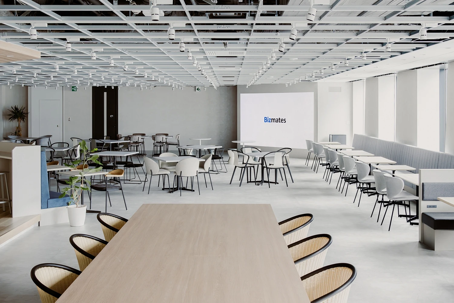事業部ごとにふたつの拠点で働くという体制をとっていたため、お互いの顔や名前の知らない社員が増えていき、会社としての一体感が失われつつあることへの課題がありました。さらに、成長戦略に基づく採用によって、さまざまなバックグラウンドや価値観をもつ人材が増えていくことで、本来の「ビズメイツらしさ」が薄まってしまうことへの危機感を解消していけるようなオフィスを今回のプロジェクトでは目指しました。