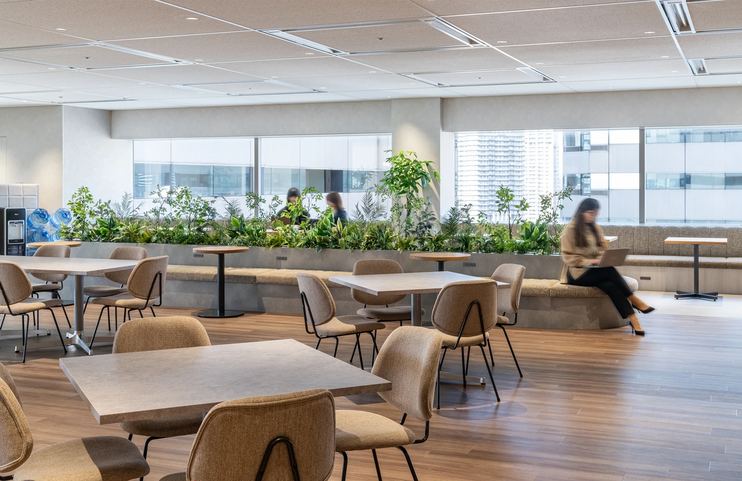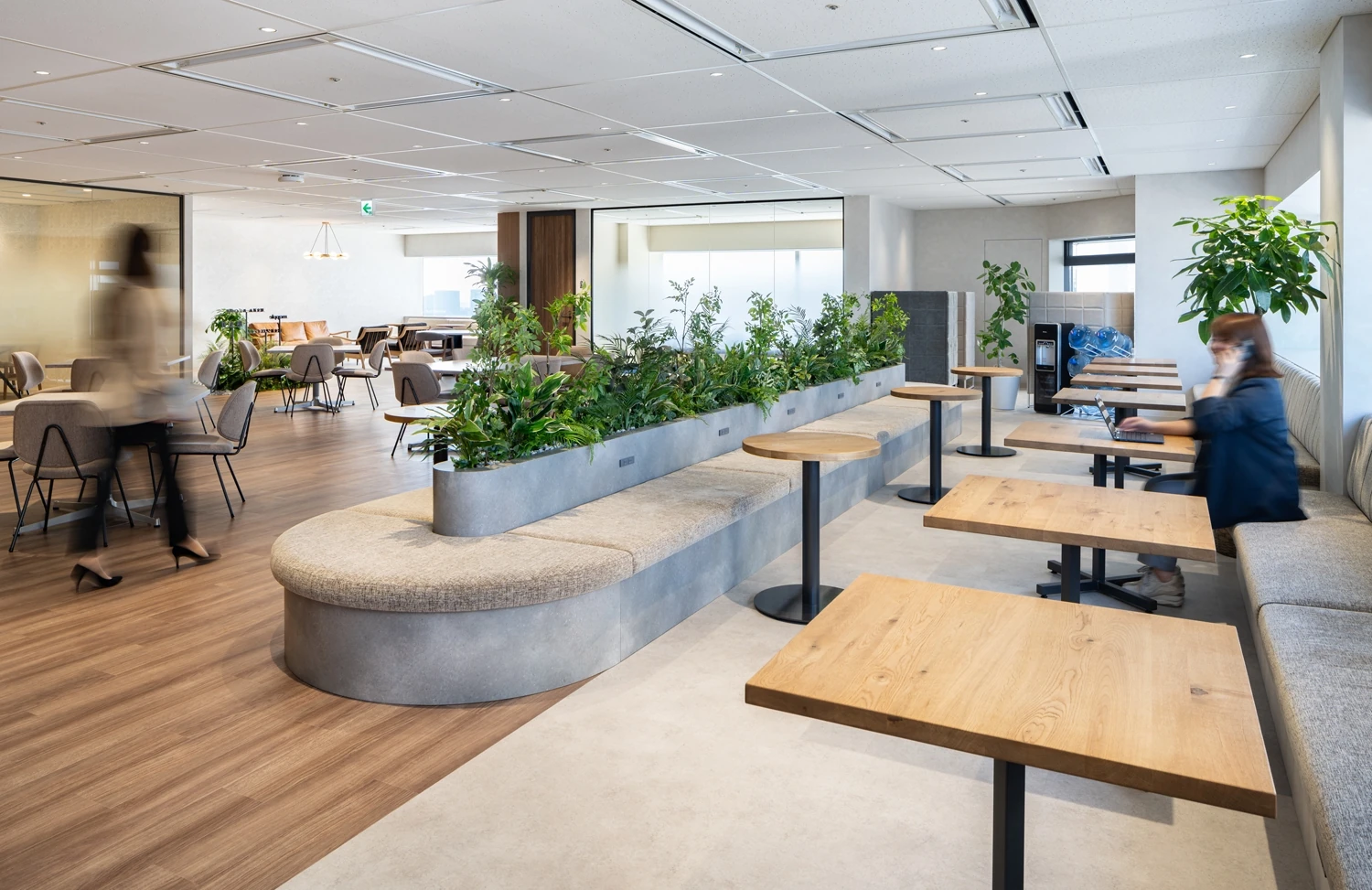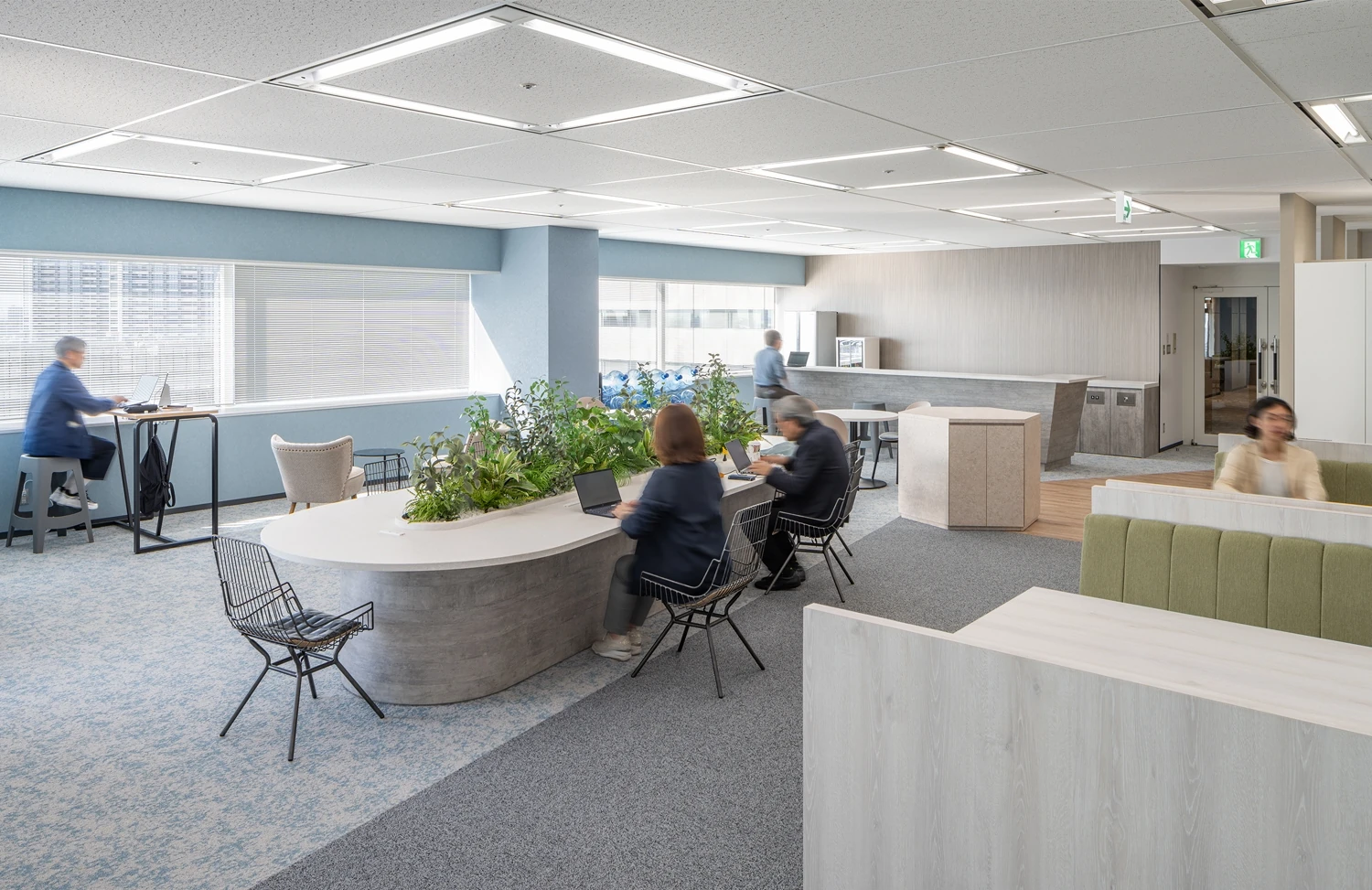 移転前は、テレワークが浸透したことによる出社率と空間稼働率の低下、それにともなう社員同士のコミュニケーション不足が課題となっており、オフィス規模最適化のためにプロジェクトがスタート。ホールディングス内の4社が2拠点・フロア別に分かれてしまっていたところをワンフロアオフィスへ移転することに。部署を超えたシナジーを促し、社をまたいだ新しい価値が生まれていくような創造性が高まる空間を目指しました。また、採用候補者から選ばれるという点も今回は重要なポイントでした。