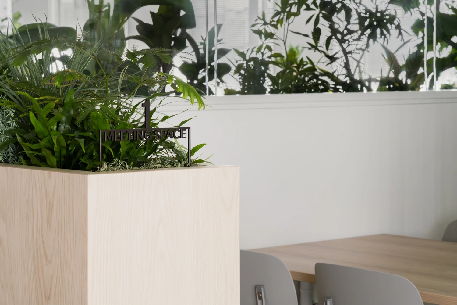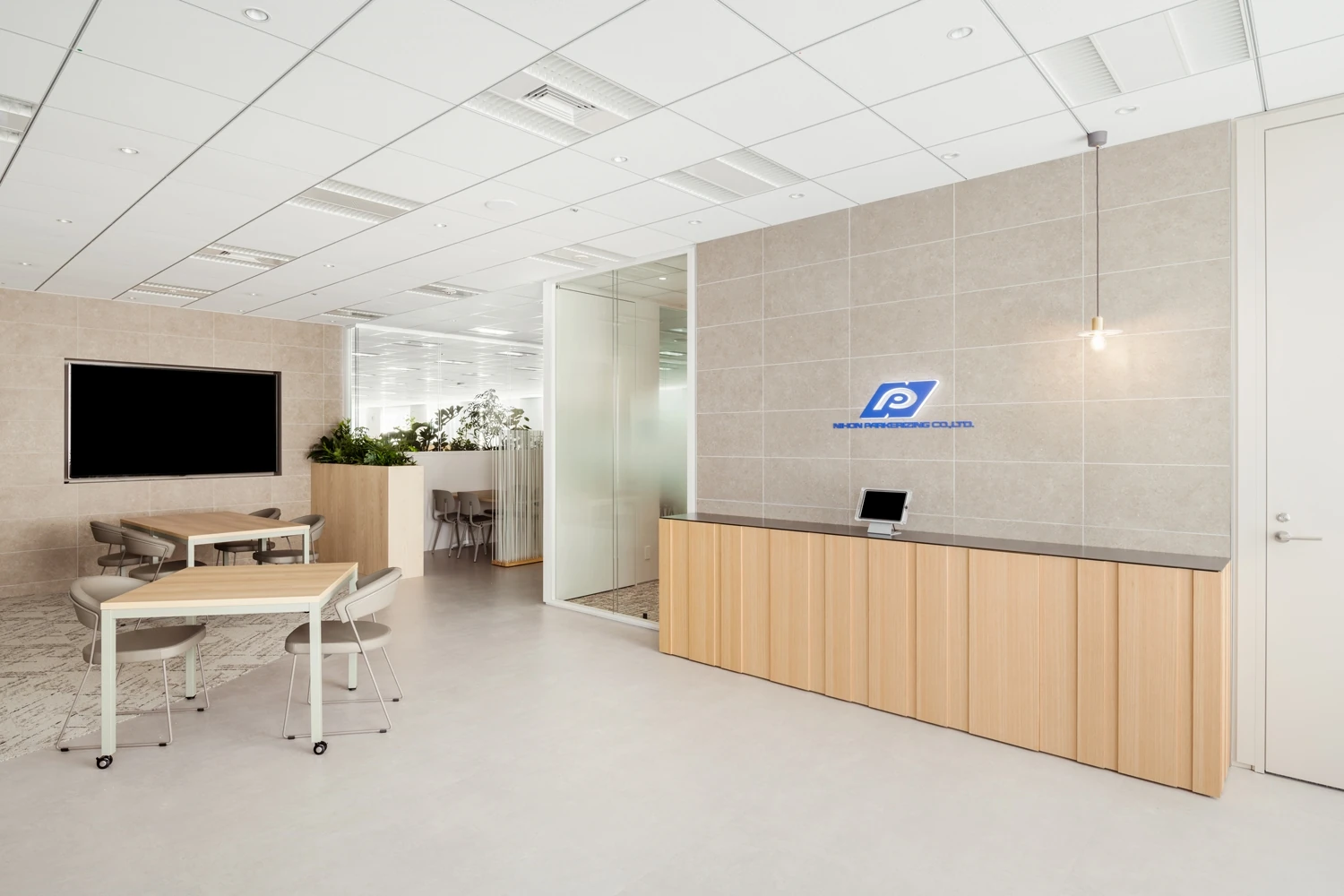 オフィス環境の構築にあたって、決裁権は経営層が持ちつつも現場の声を拾い上げてプロジェクトの中に反映。毎日座るチェアは社員投票で決定するなど、社員満足度の向上を目指す日本パーカライジング様らしい方法で計画を進めました。今回のコンセプトは『化学反応から、サステナビリティーへ繋がっていく』。オフィスの様々な場所でコミュニケーションの化学反応が起き、各々が成長する事により、日本パーカライジング様の「資源の新しい価値を創造し、地球環境の保全と豊かな社会作りに貢献する」という企業理念の実現を目指しました。このコンセプトのイメージから、素材はナチュラルな素材を中心に構成しながら、表面加工のマテリアルをアクセントに取り入れる事で、心理的に動きやすいようにカラーコーディネート。レイアウトに関しても、建物やフロアが分かれていながらシーンに合わせて柔軟に働き方を選択できるよう、軽い打ち合わせができるスペースや個室ブースを多く設置し、ストレスを極力減らせるようなオフィス設計しました。